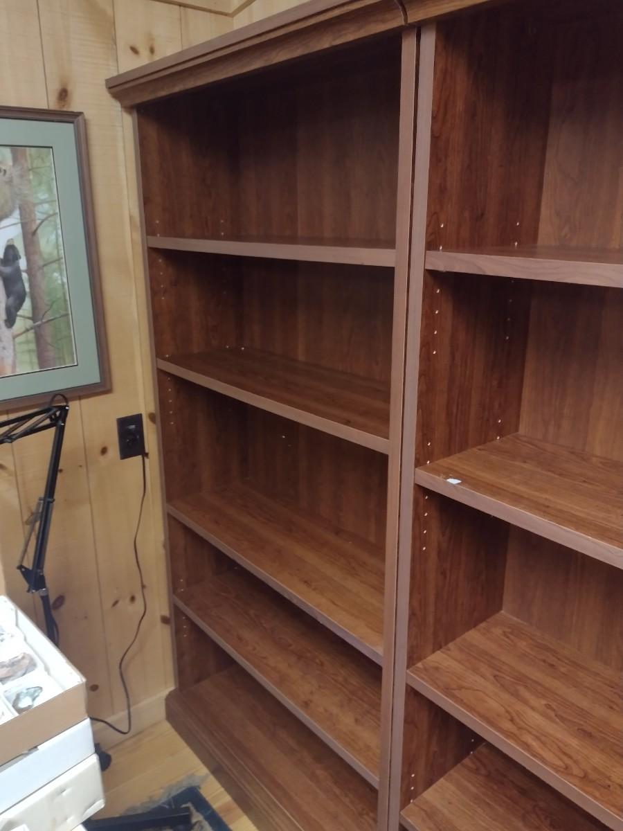 Wood Finish Bookcase (#5) PLEASE NOTE:. Due to no internet connection or wireless service, all invoices must be prepaid via PayPal, Stripe, or Zelle prior to arrival at pick up. Exact change cash onsite is acceptable but absolutely no debit or credit cards at time of pick up.