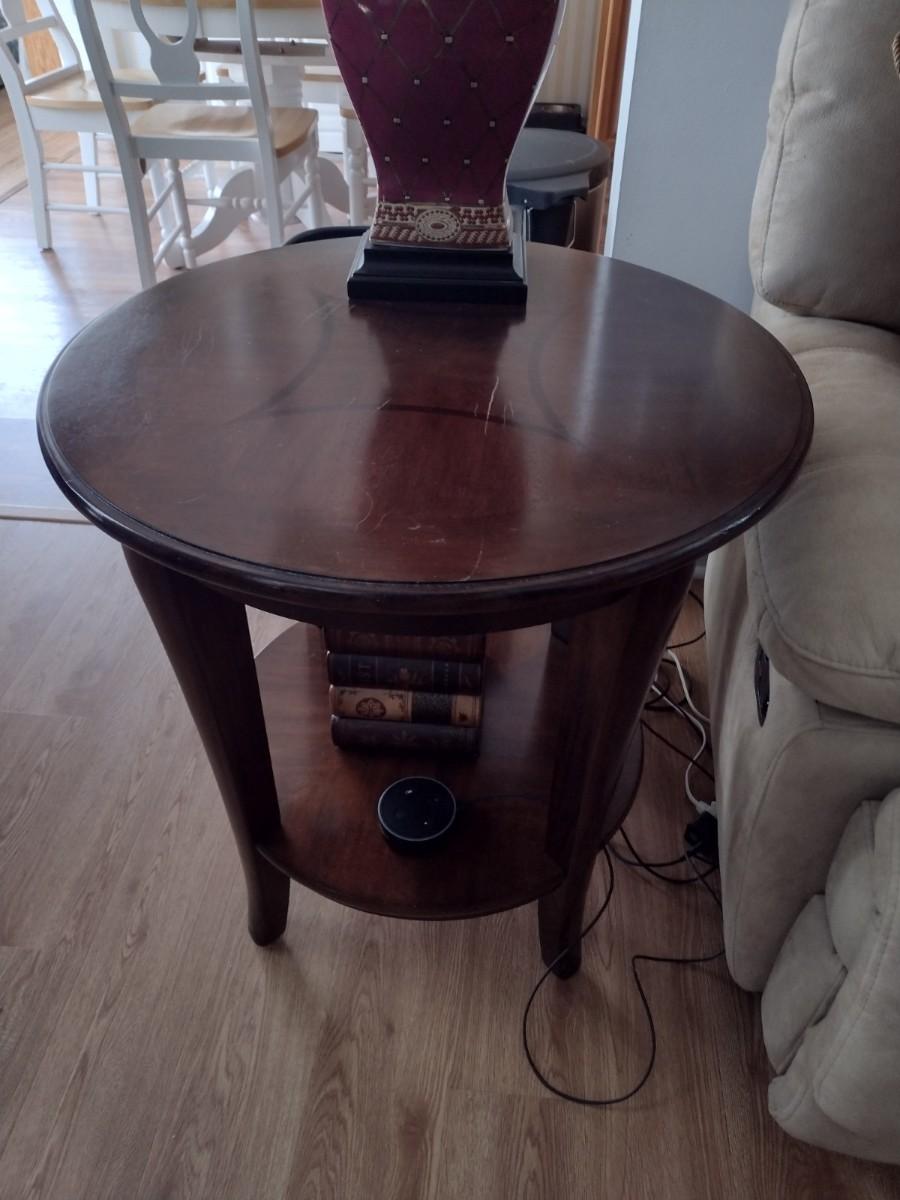 Wood Finish Contemporary Lamp Table with Inlay Design Choice B. This table has some visual scratches on the surface as shown