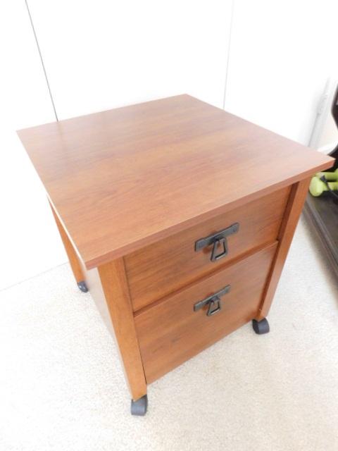 Wood Finish Double Drawer Rolling Filing Cabinet Very Solid