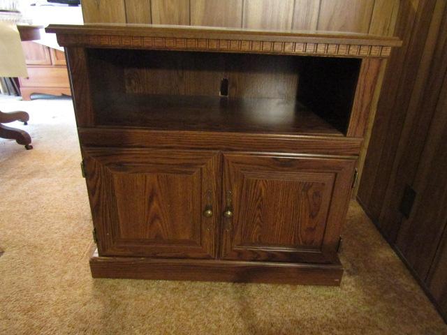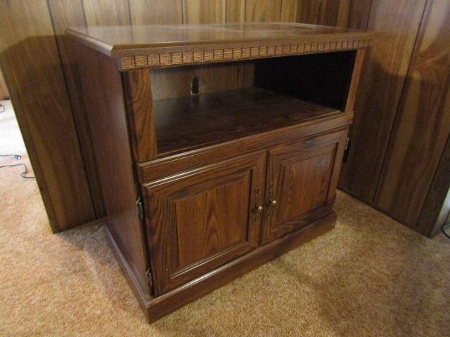 Wood Finish Entertainment Stand with Double Door Cabinet 31"x17"x30" may have some wear or scratches to the surface
