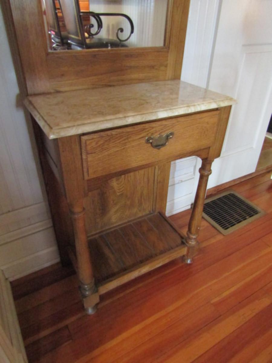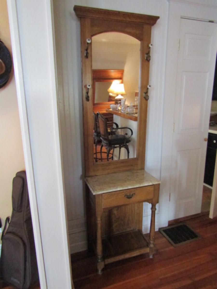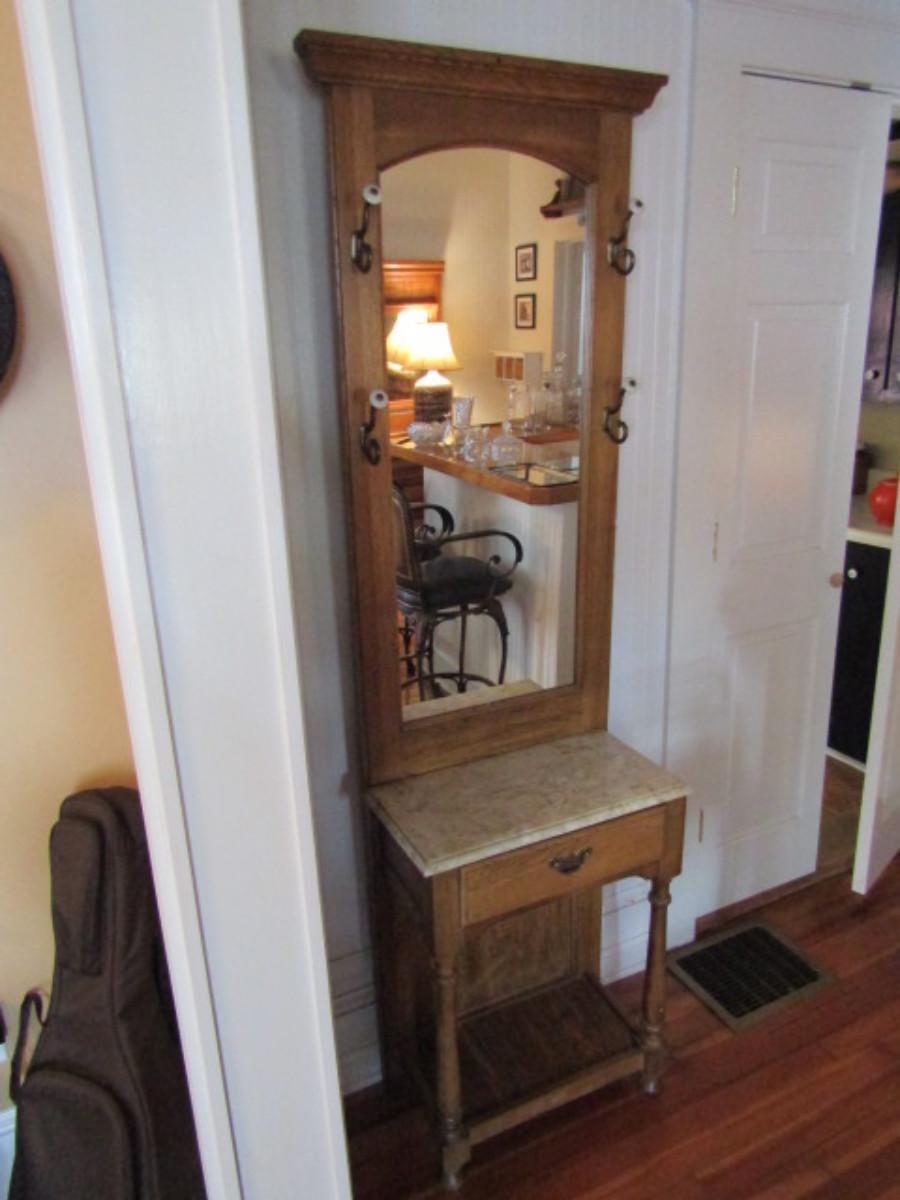 Wood Finish Hall Tree with Mirror and Drawer