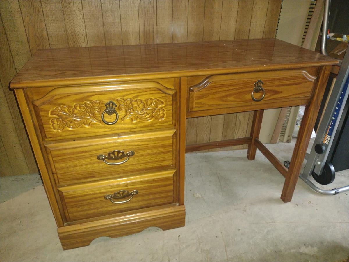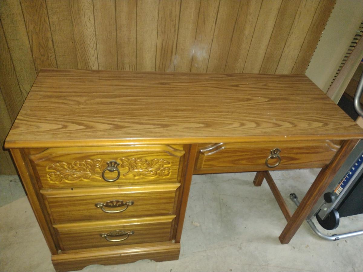 Wood Finish Knee Hole Desk- Approx 45 1/2" x 17 3/4" x 30 1/4"