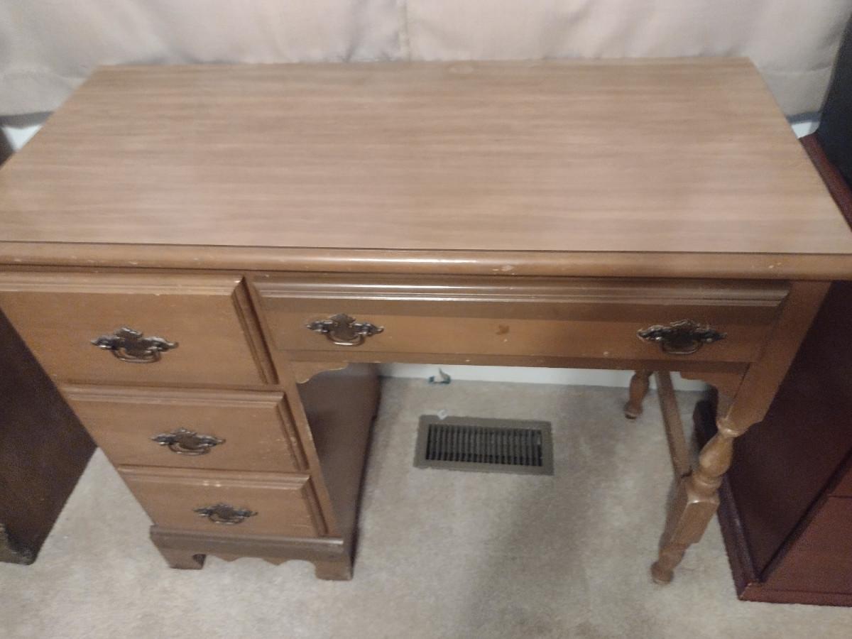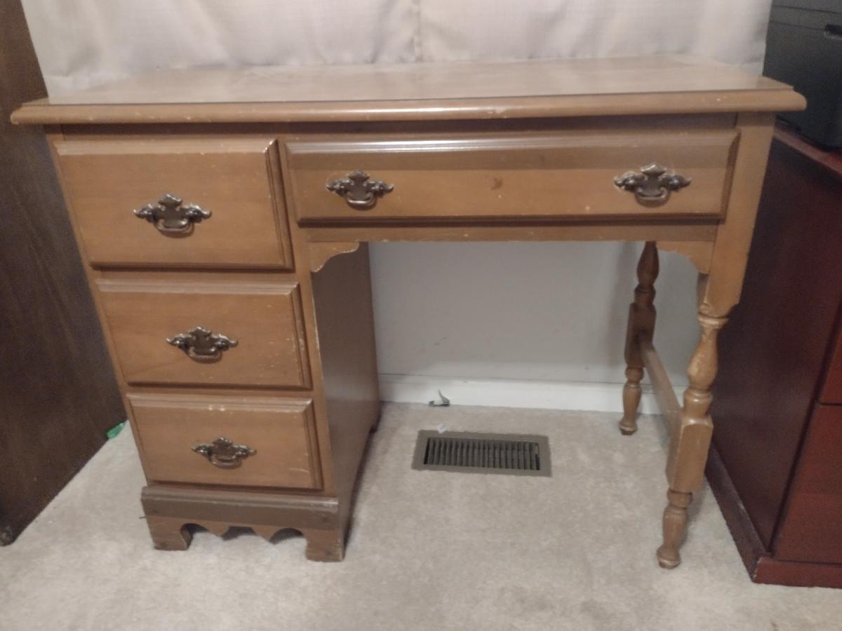 Wood Finish Knee Hole Desk- Approx 37 1/2" x 17 1/4" x 30 3/4" Tall