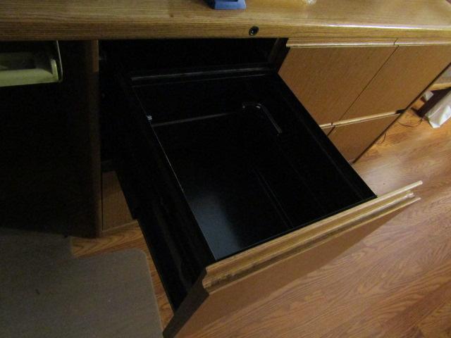 Wood Finish Knee Hole Desk with Work Station (No contents)