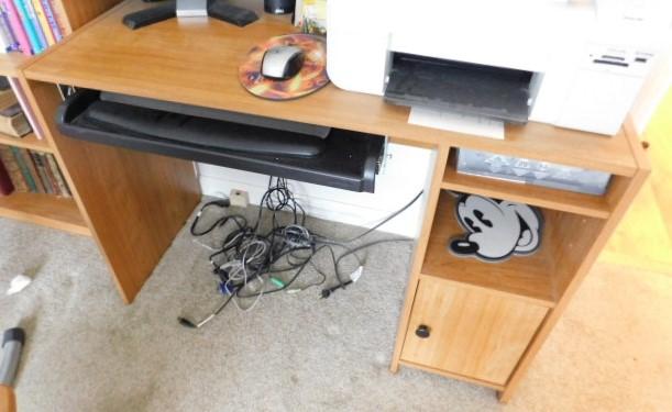 Wood Finish Knee Hole Office Desk 40"x18"x29" (Desk Only--No Contents) has a printer cabinet not shown