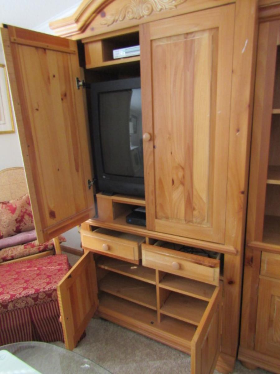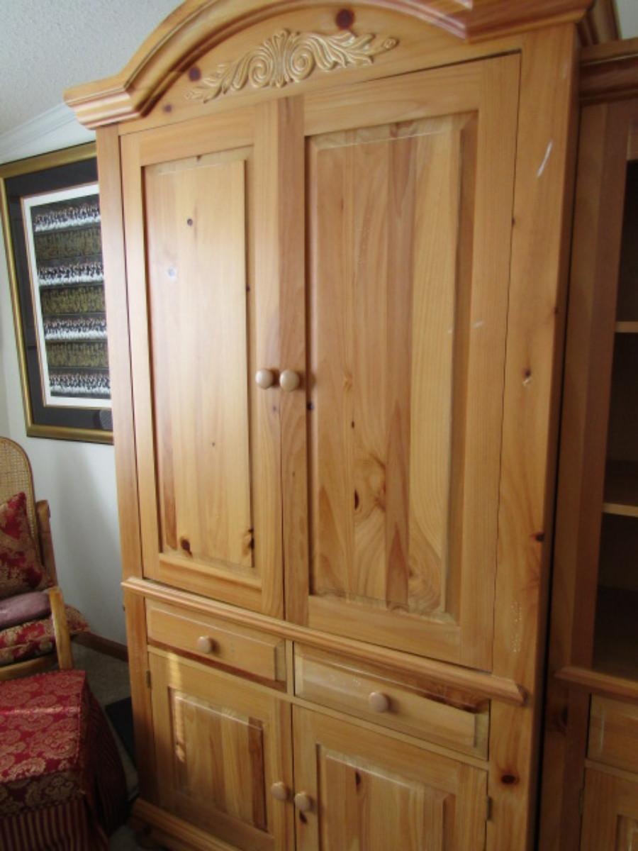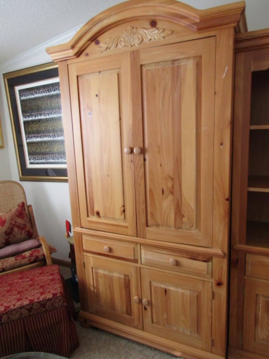Wood Finish Media Cabinet by Broyhill. This item matches and may attach to previous item (bookshelf with drawer and enclosed storage) if both items are purchased.