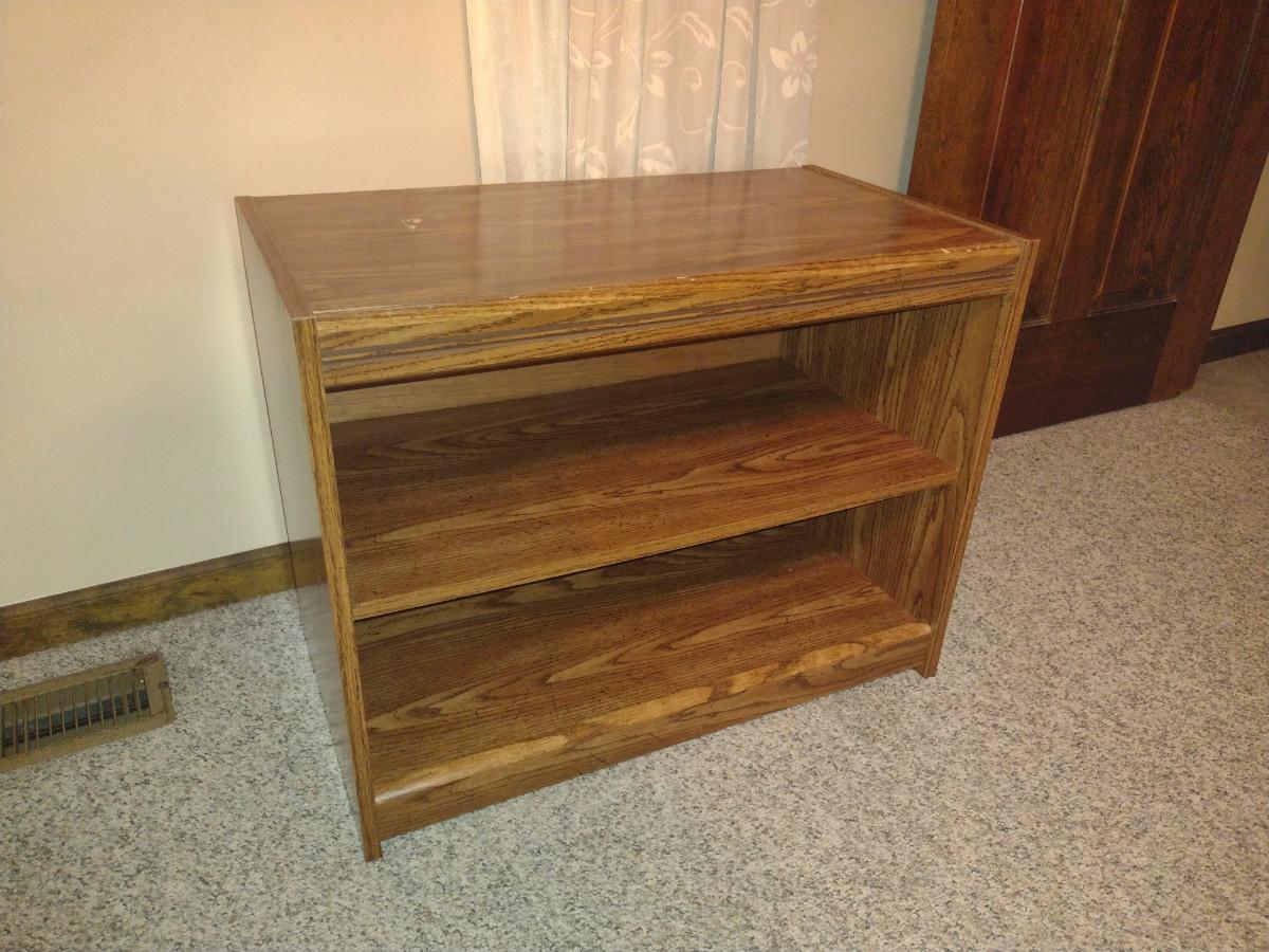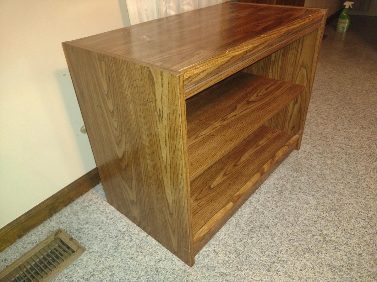 Wood Finish Media Stand- Approx 27 1/2" x 15" x 21 1/4" Tall. Some discoloration to finish- please see all pictures.