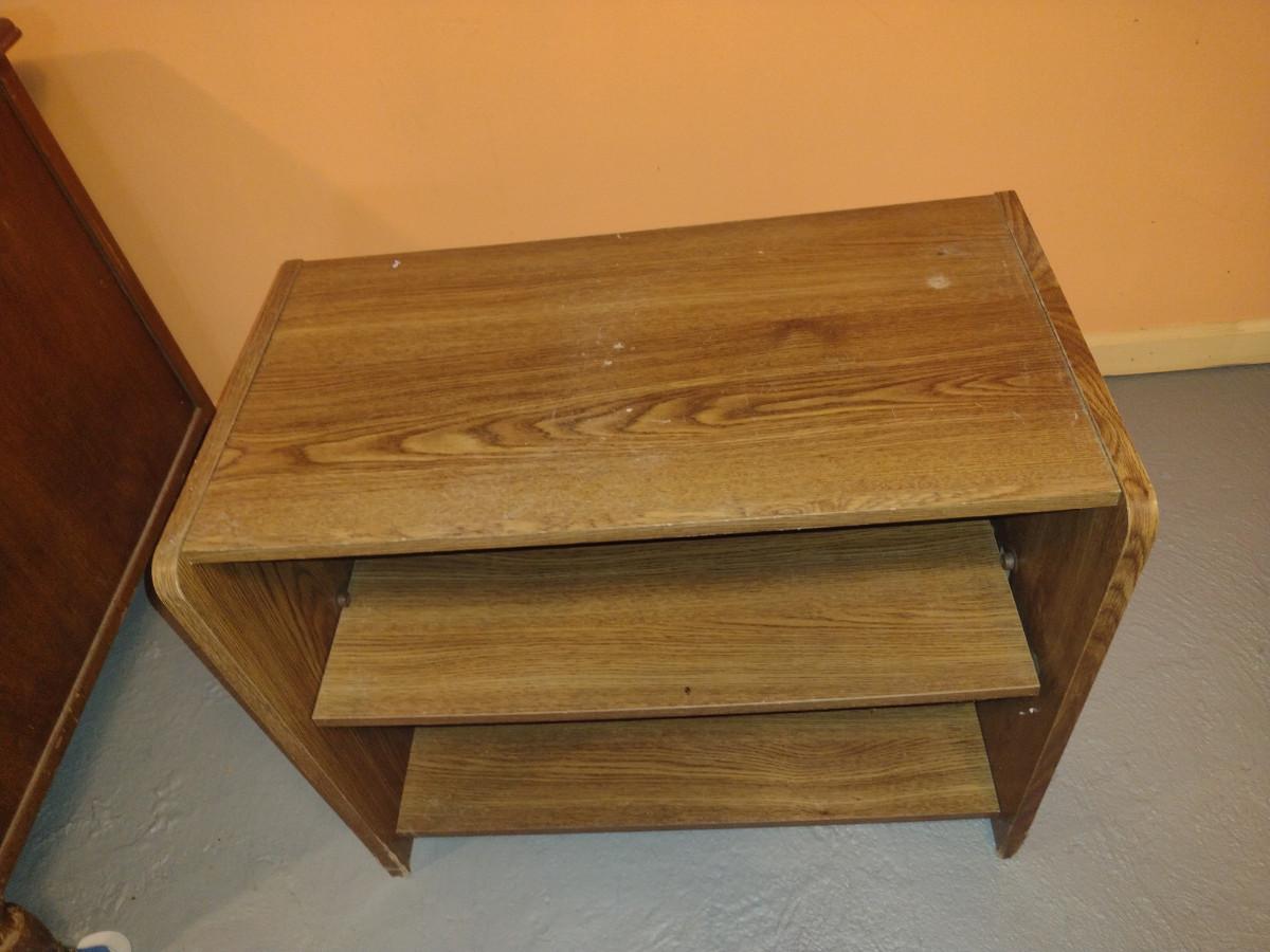 Wood Finish Media Stand- Approx 28" x 14 1/2" x 23 1/2" Tall. Item is located downstairs and will need to be brought up a flight of stairs.