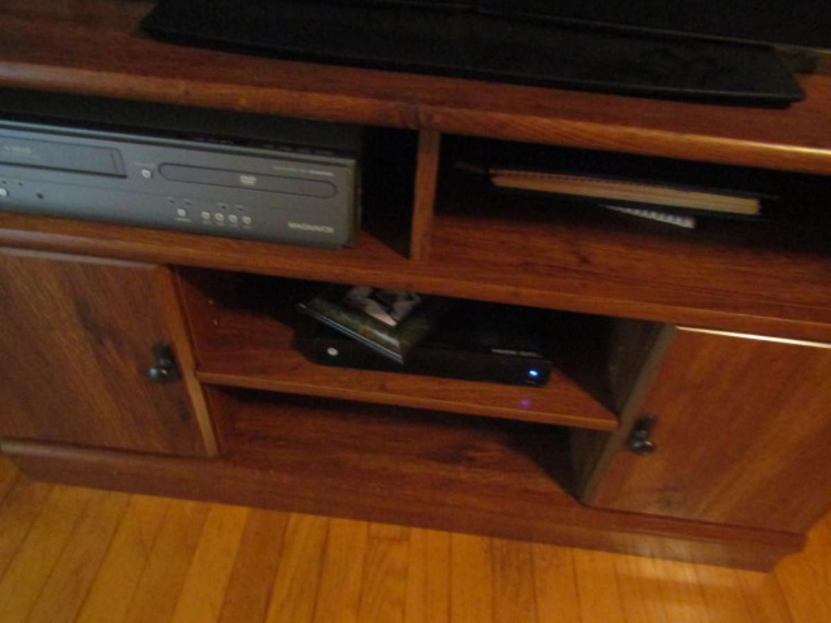 Wood Finish Media Stand (No Contents)