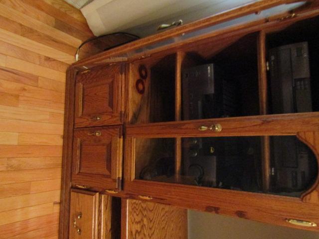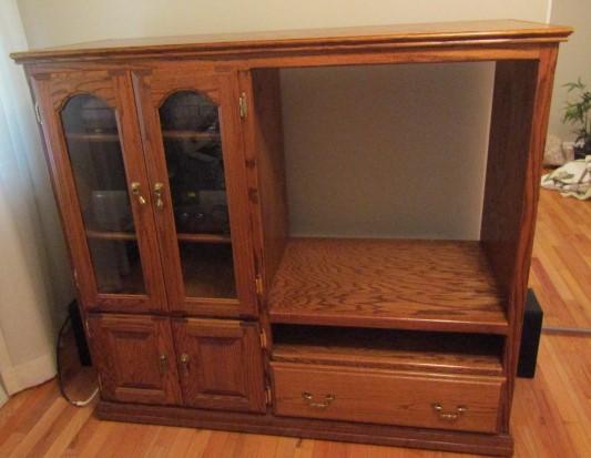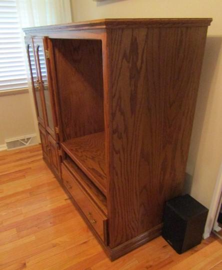 Wood Finish Oak Media Console (No Contents) second floor. Will need help taking down 9 stairs