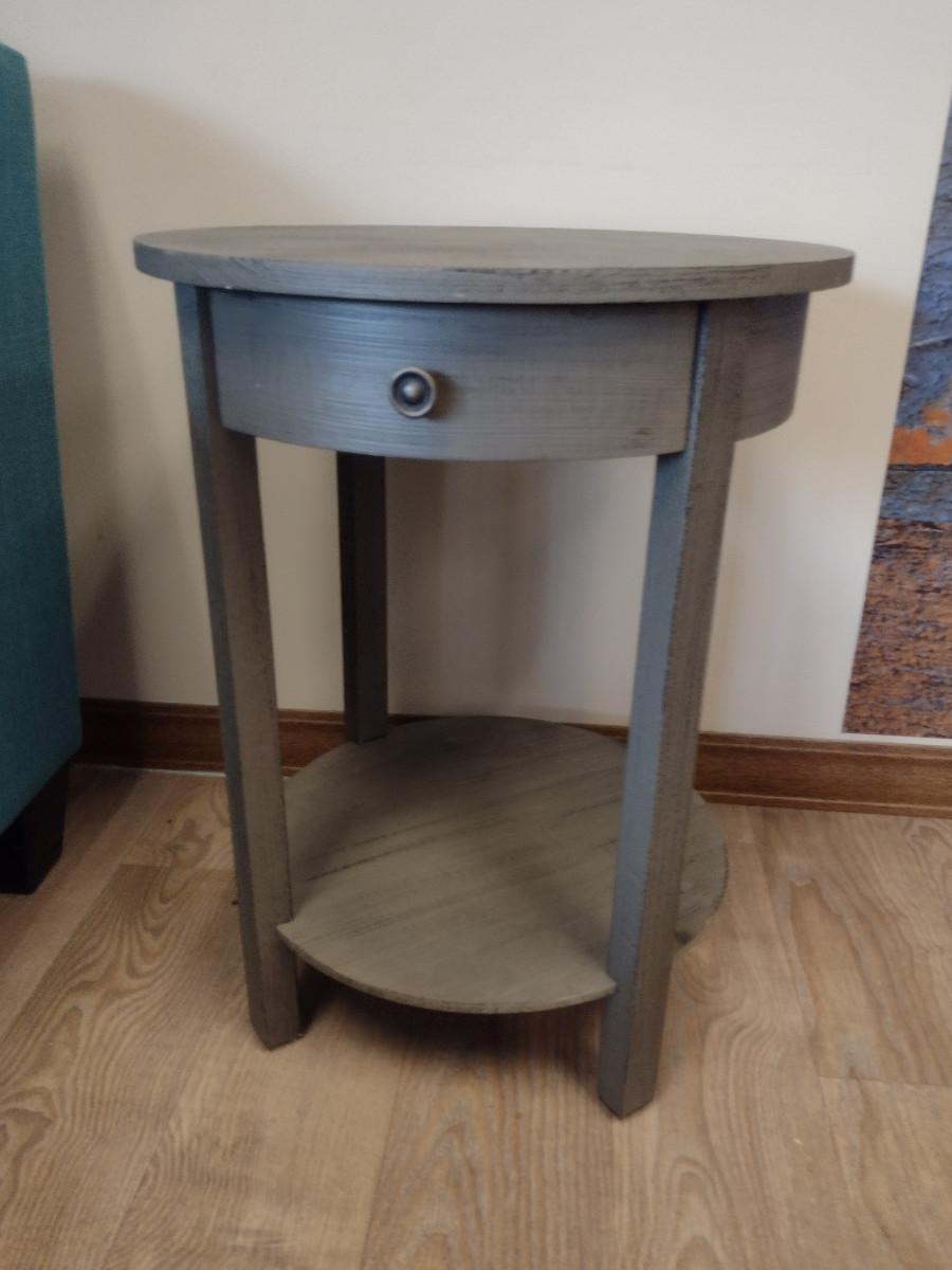 Wood Finish Round Accent Table with Drawer- Approx 19" in Diameter, 24" Tall. Item needs to be tightened- legs are loose.
