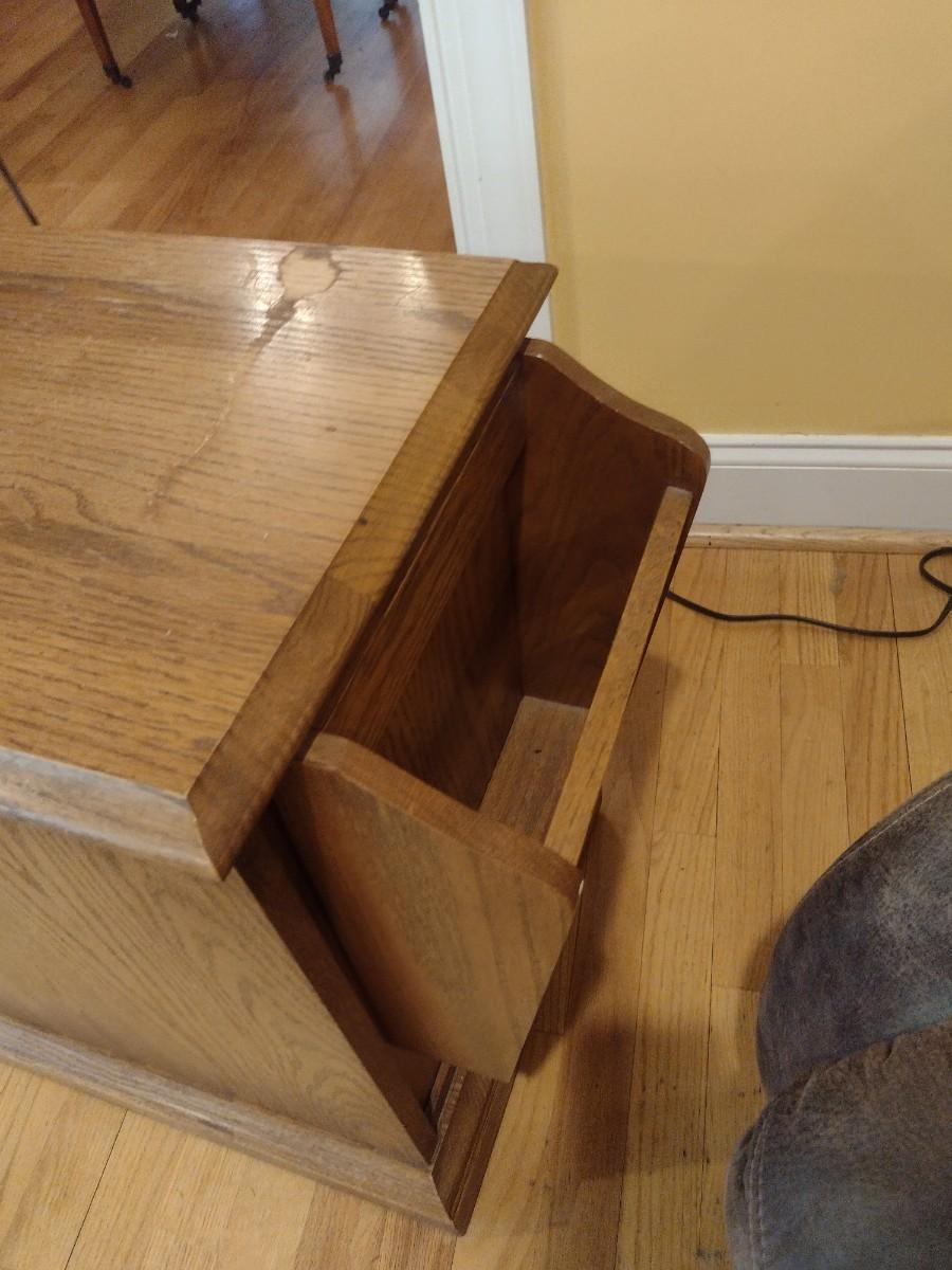 Wood Finish Side Table with Magazine Rack Feature