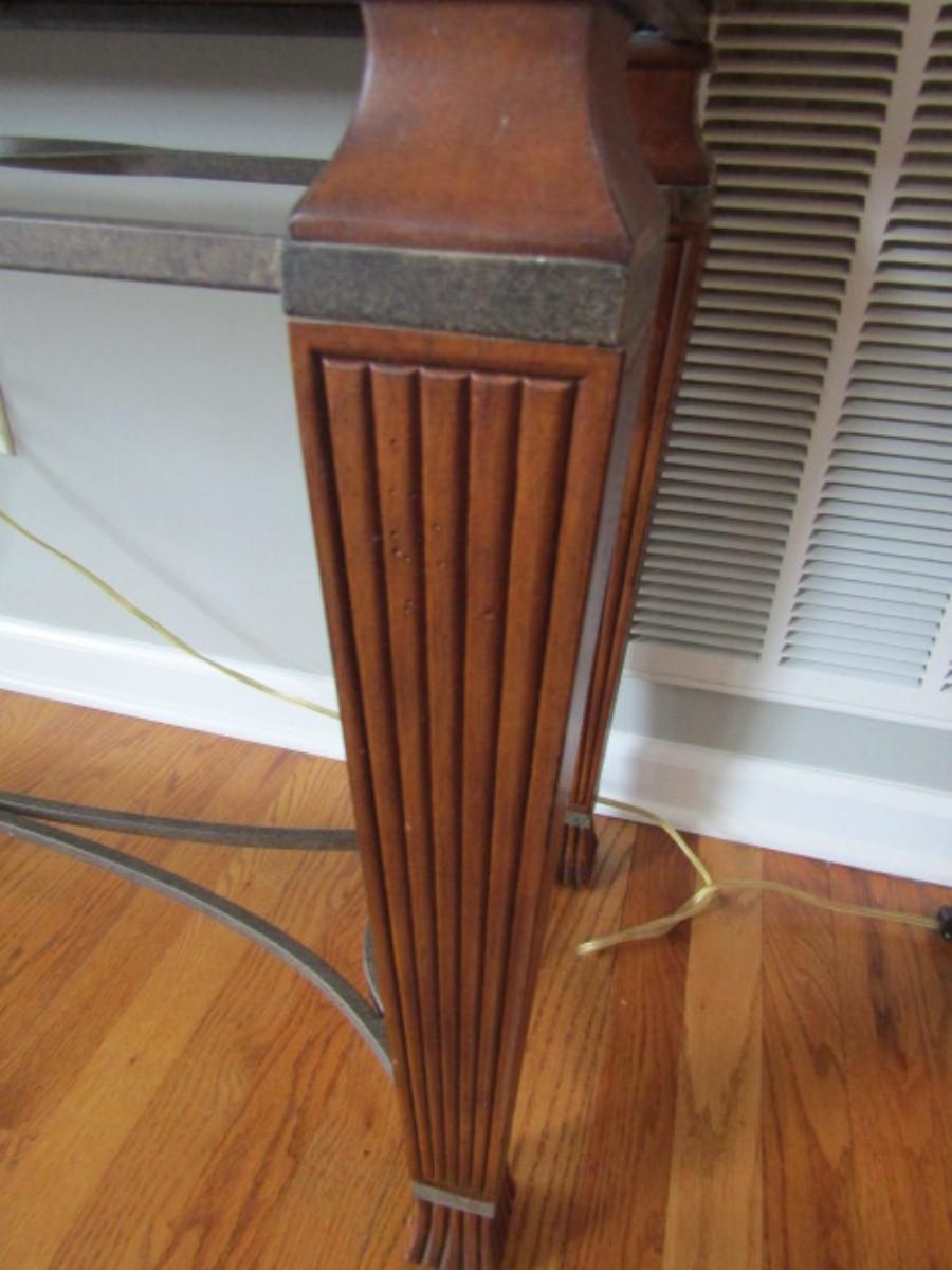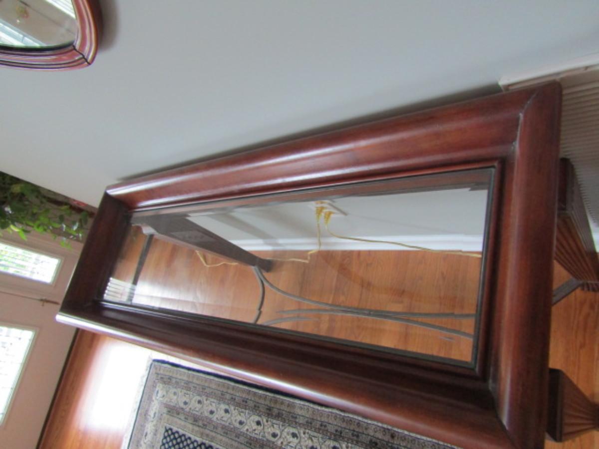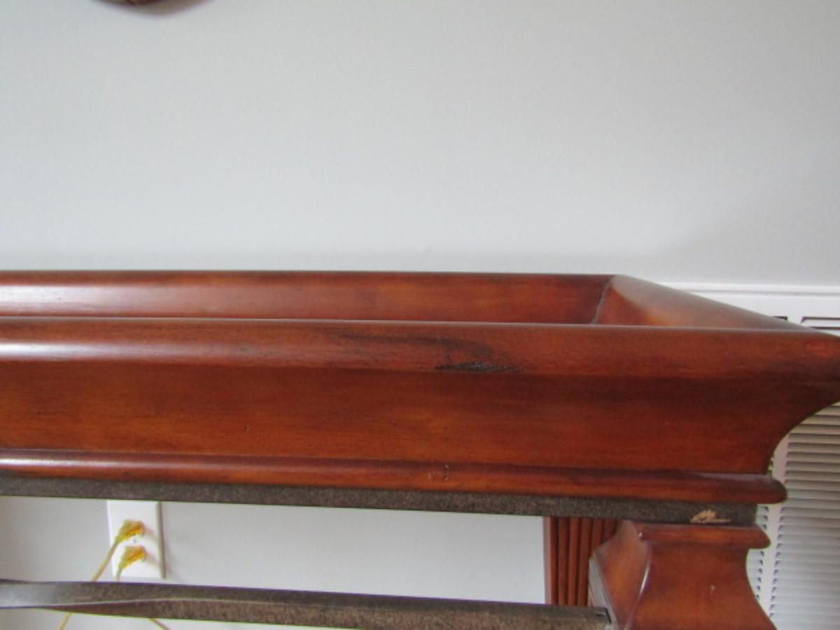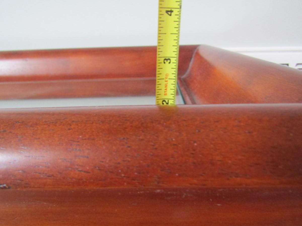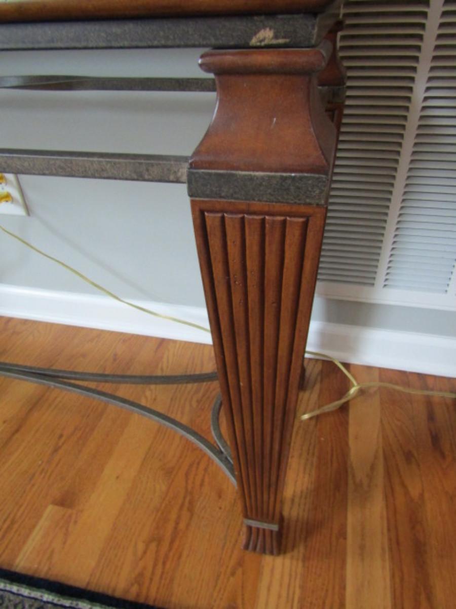 Wood Finish Sofa Table- Picture Frame Style Top with Inlaid Glass
