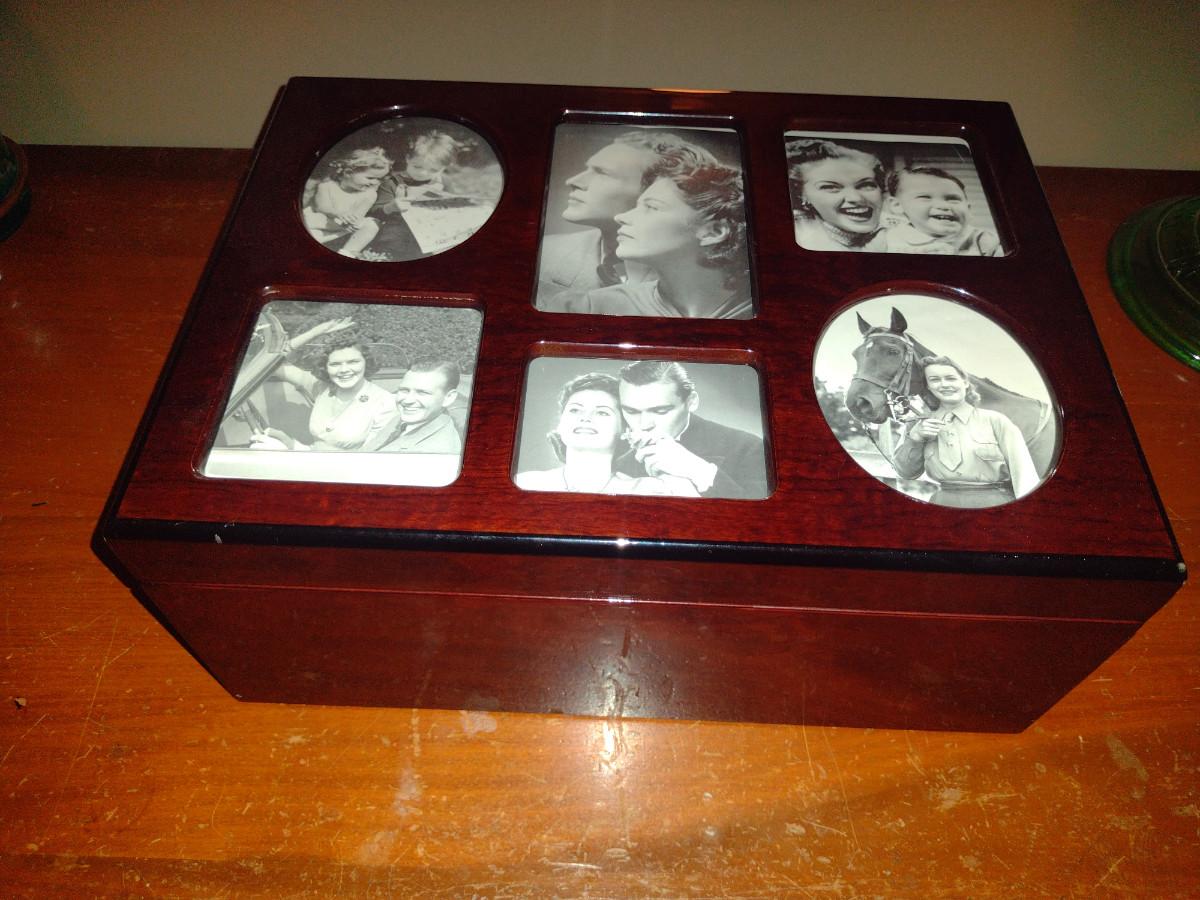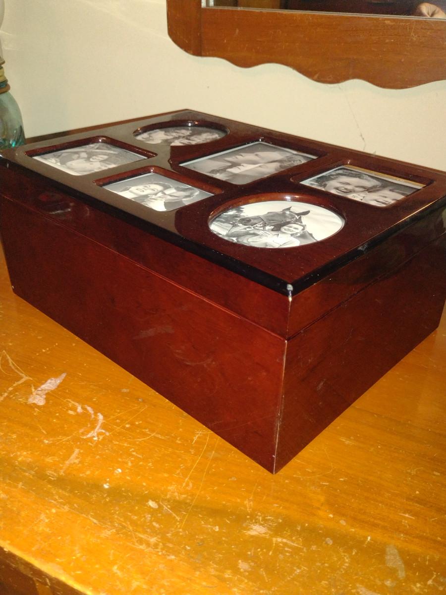 Wood Finish Storage Box with Picture Frame Top- Approx 13 1/2" x 10" x 6" Tall