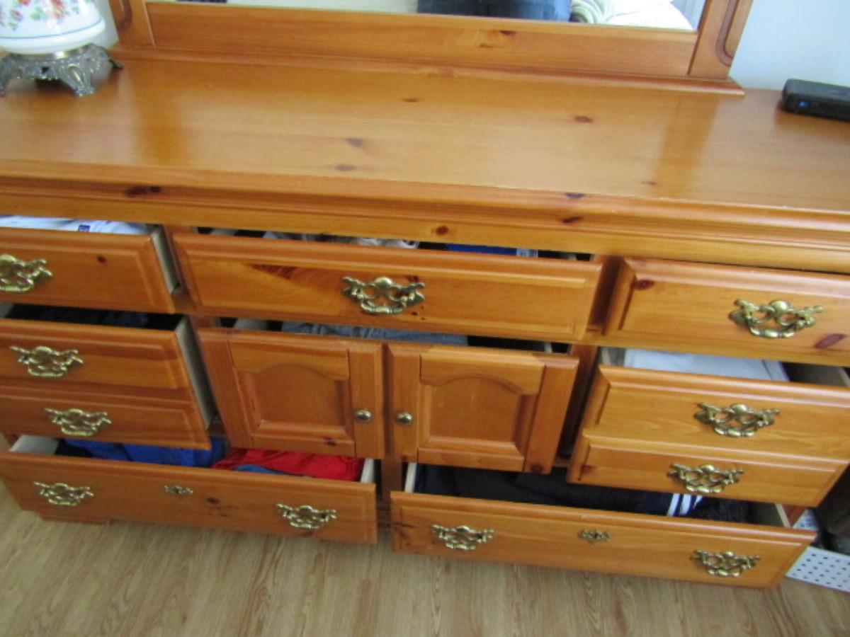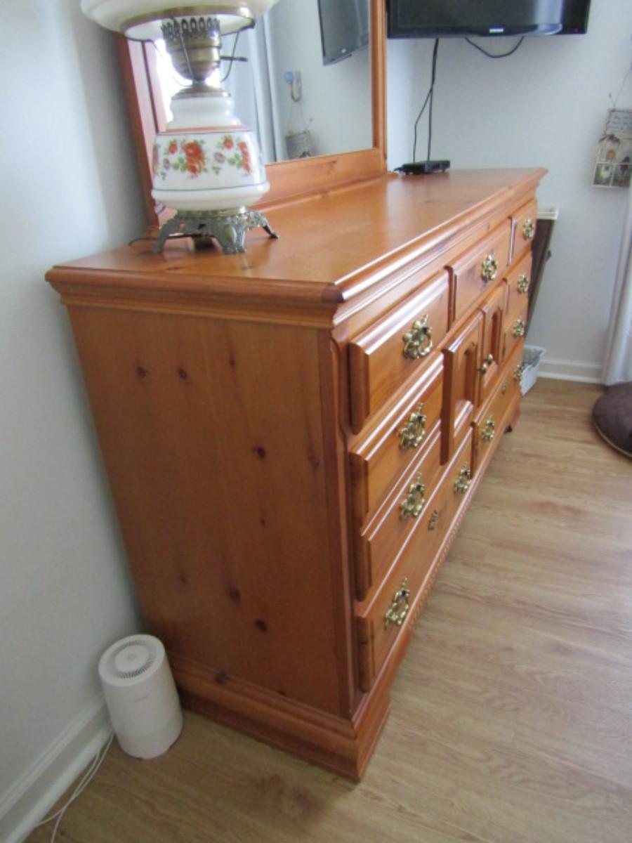 Wood Finish Stretch Dresser with Mirror (No Contents)