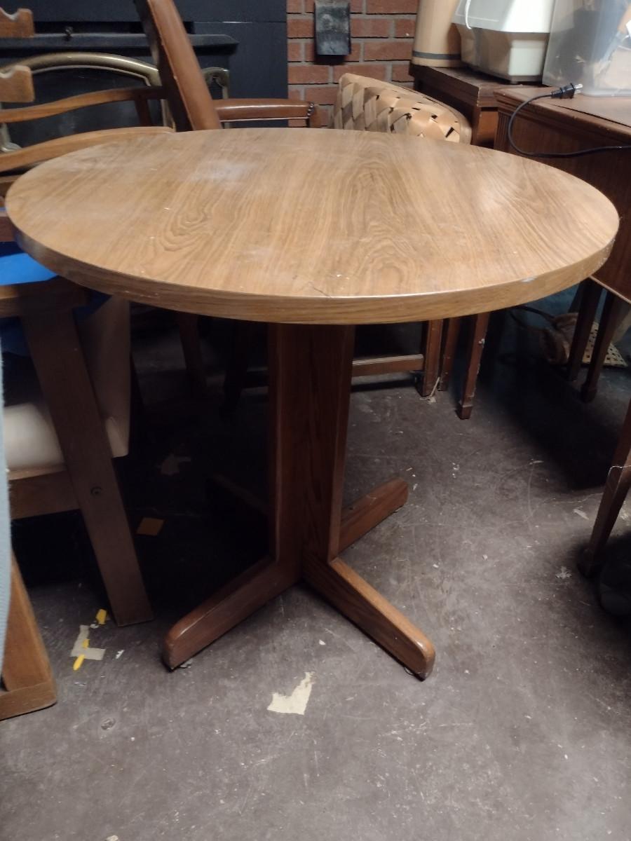 Wood Finish Table- Approx 29 3/4" in Diameter, 29 1/4" Tall