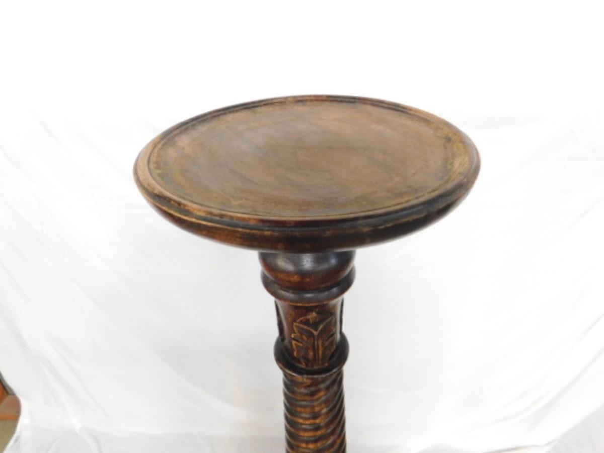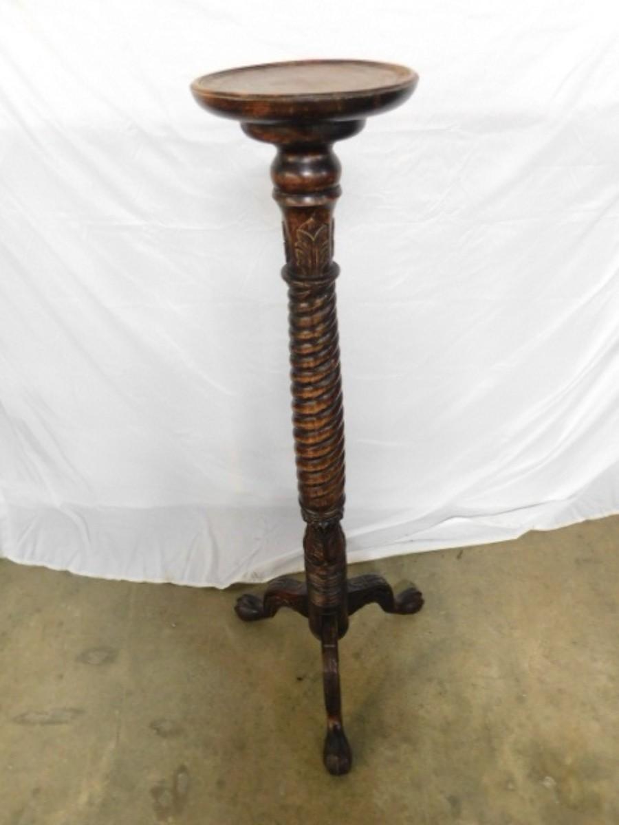 Wood Finish Tall Spiral Post Candle or Plant Stand