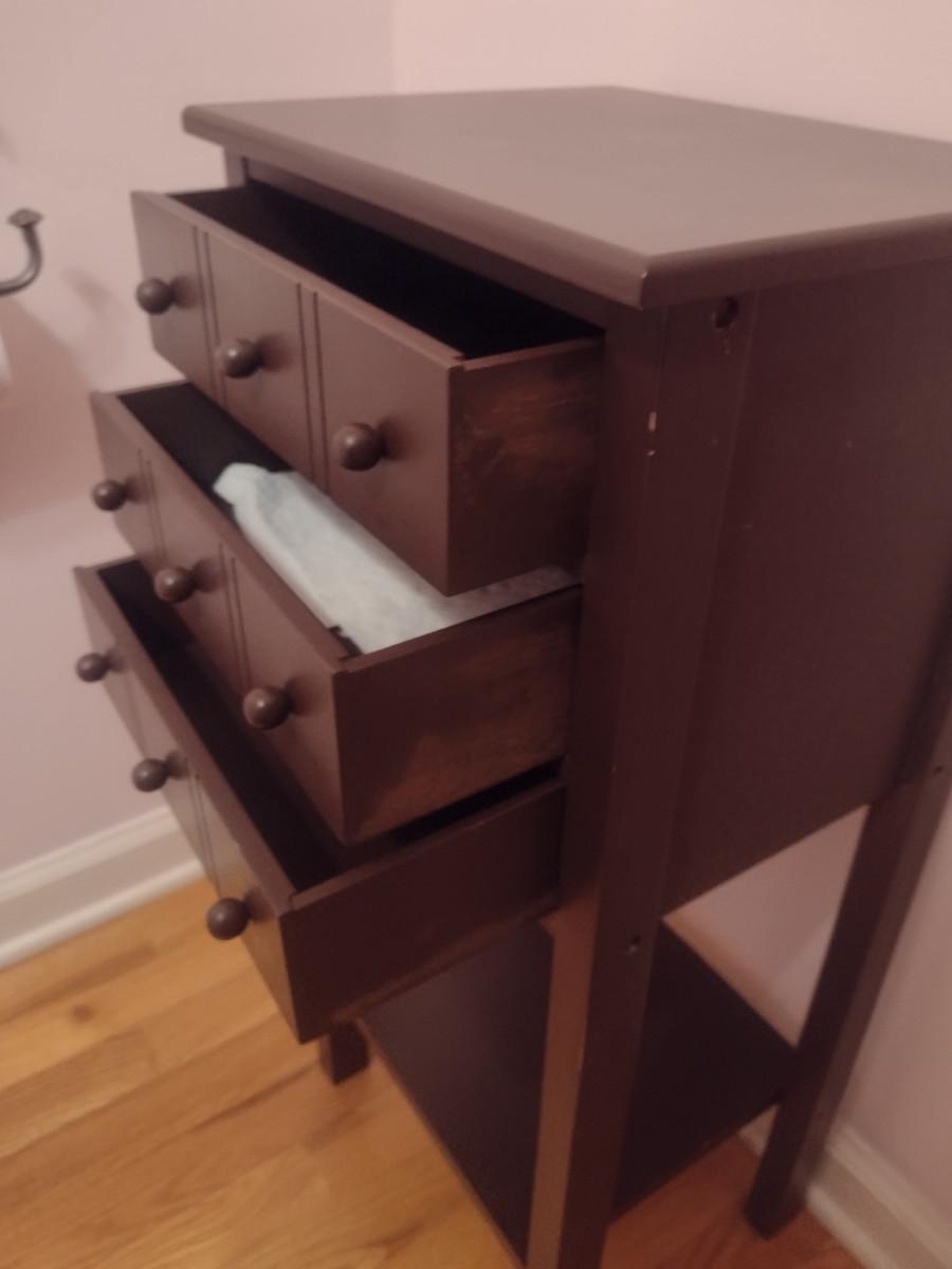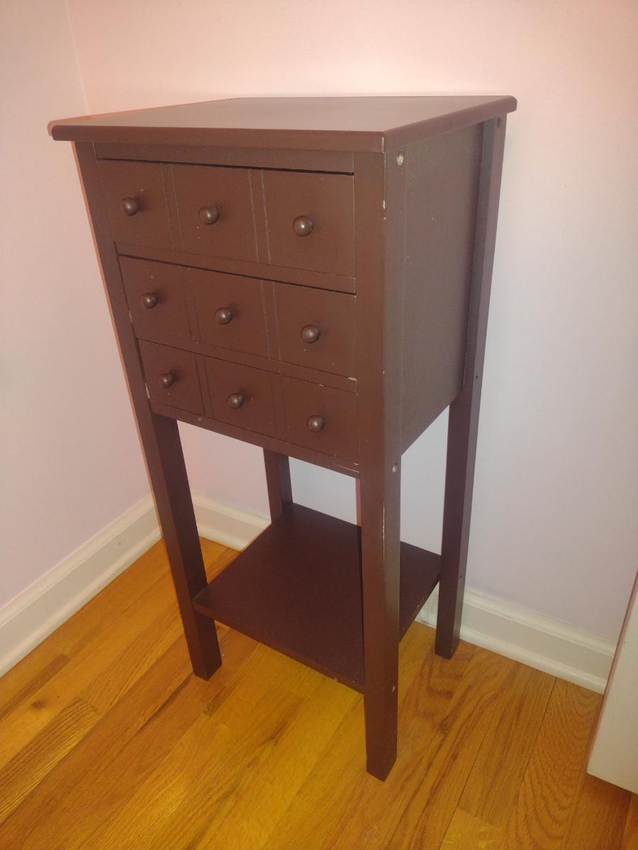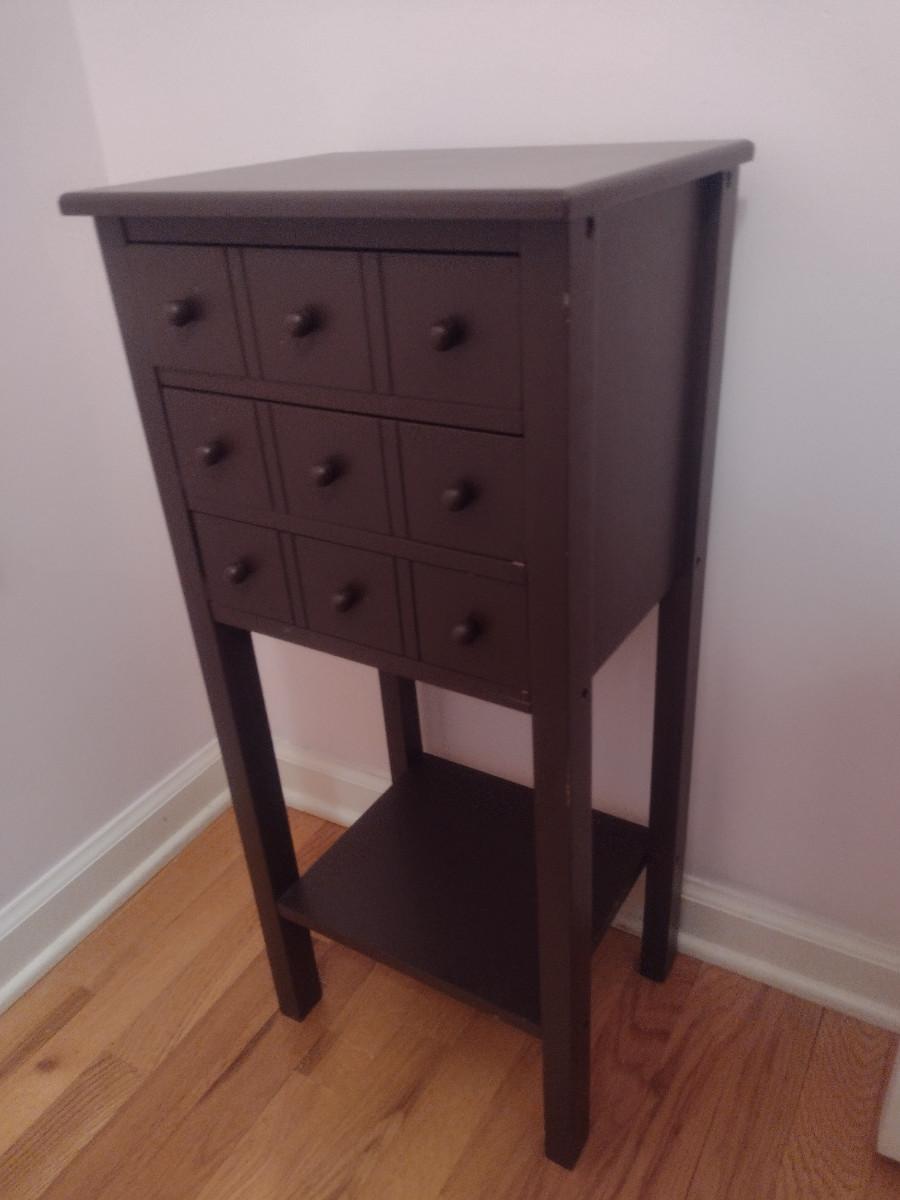 Wood Finish Three Drawer Accent Table- Approx 12 3/4" x 10" x 28 1/2" Tall
