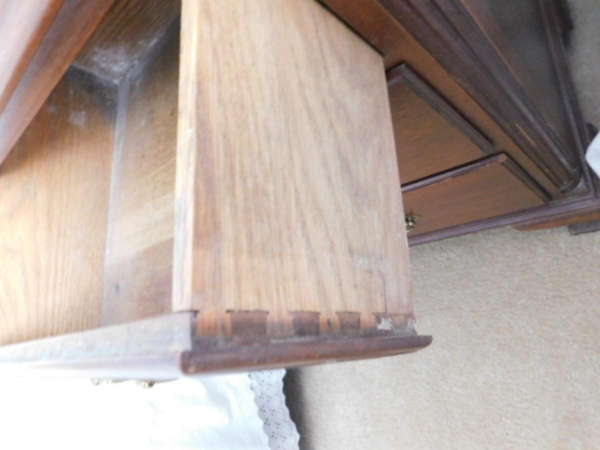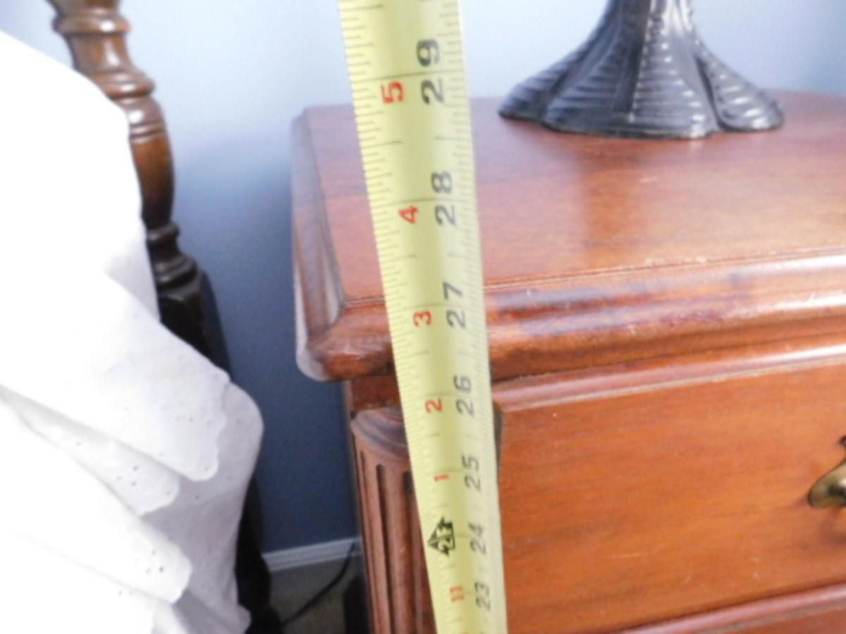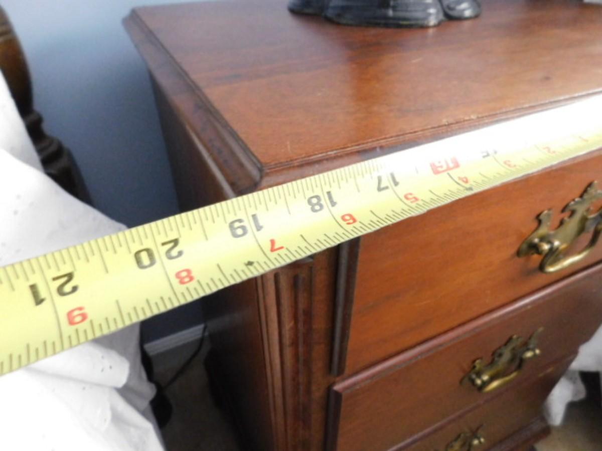 Wood Finish Three Drawer Dresser downstairs item has some wear and scratches