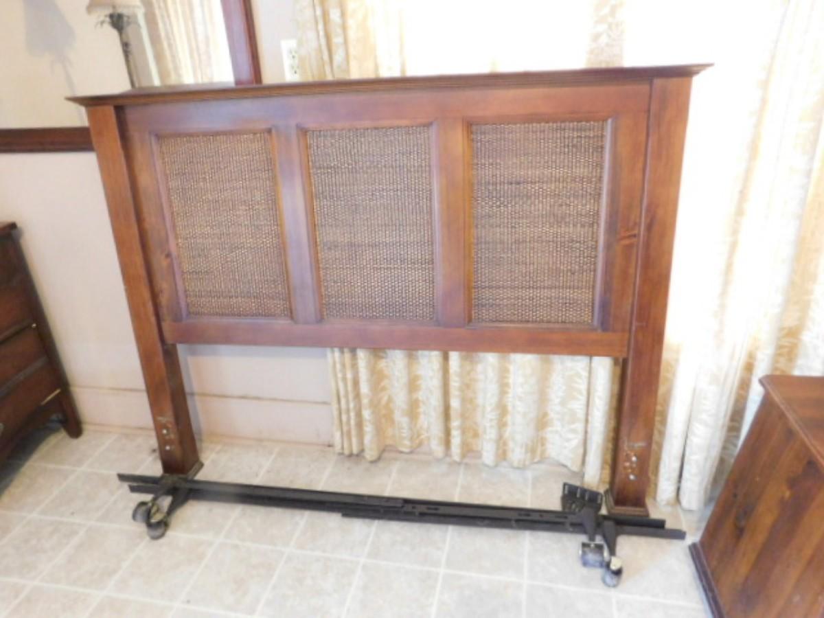 Wood Finish with Rattan Panels Pier One Queen Size Headboard with Frame