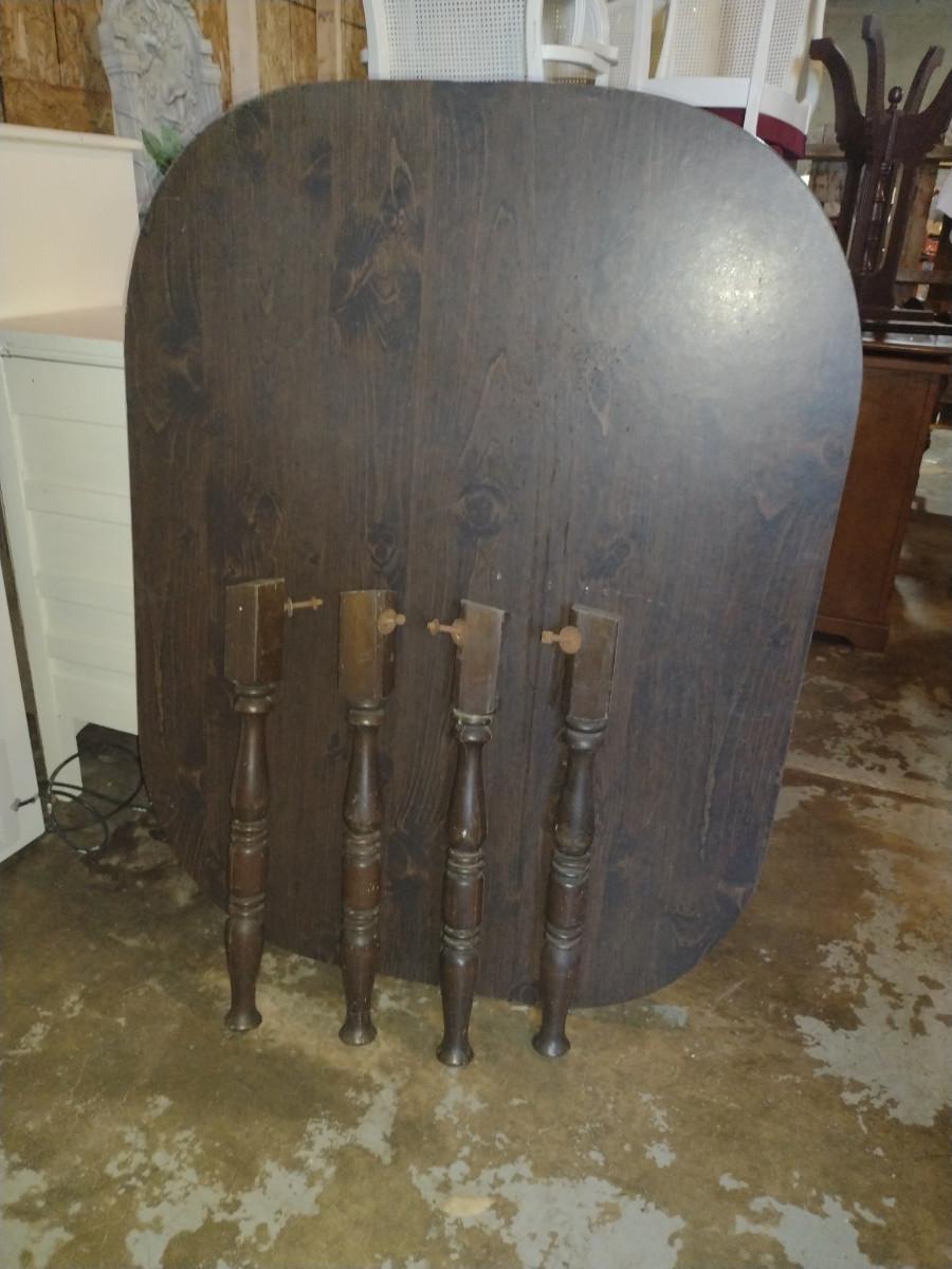 Wood Finish Work Table. Item measures approx 35 x 46 x 25" tall. Please see all pictures for condition/ areas of damage.