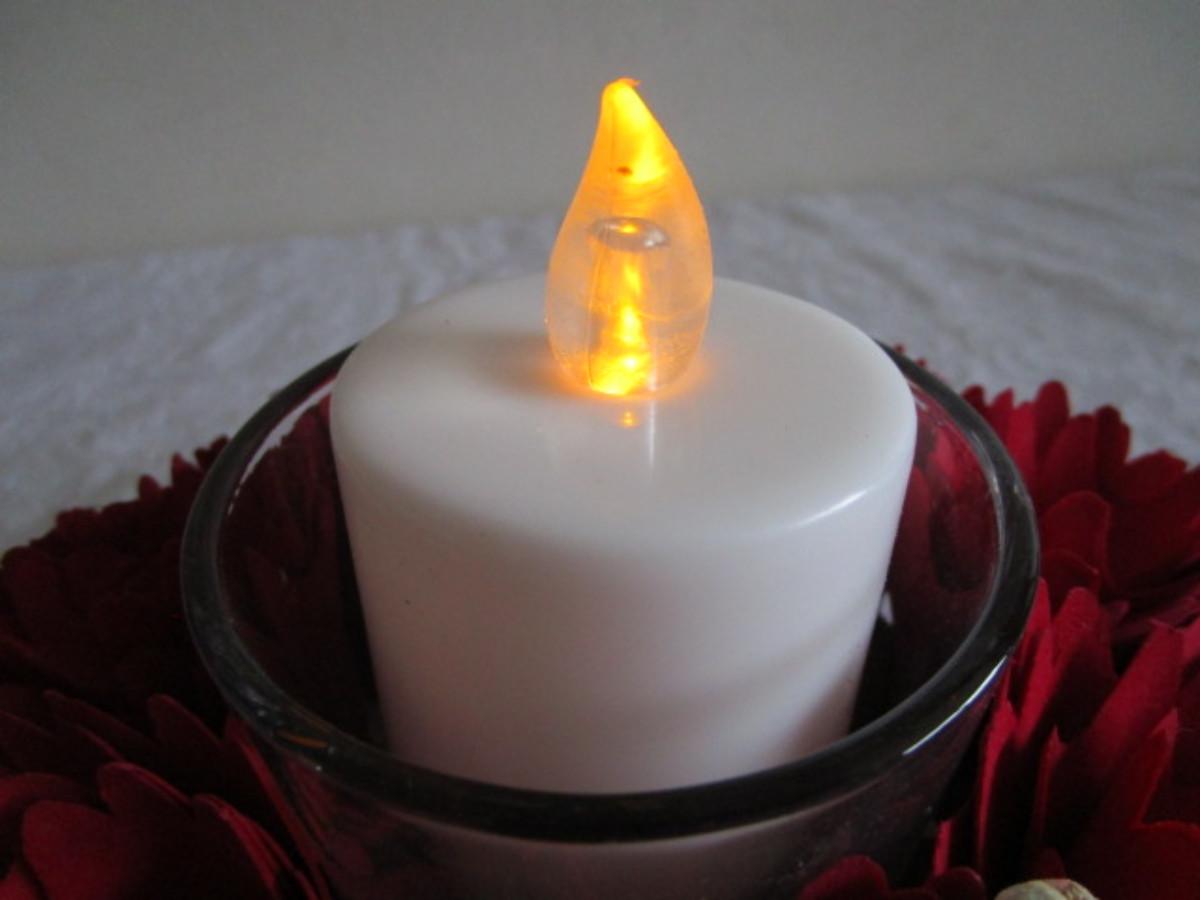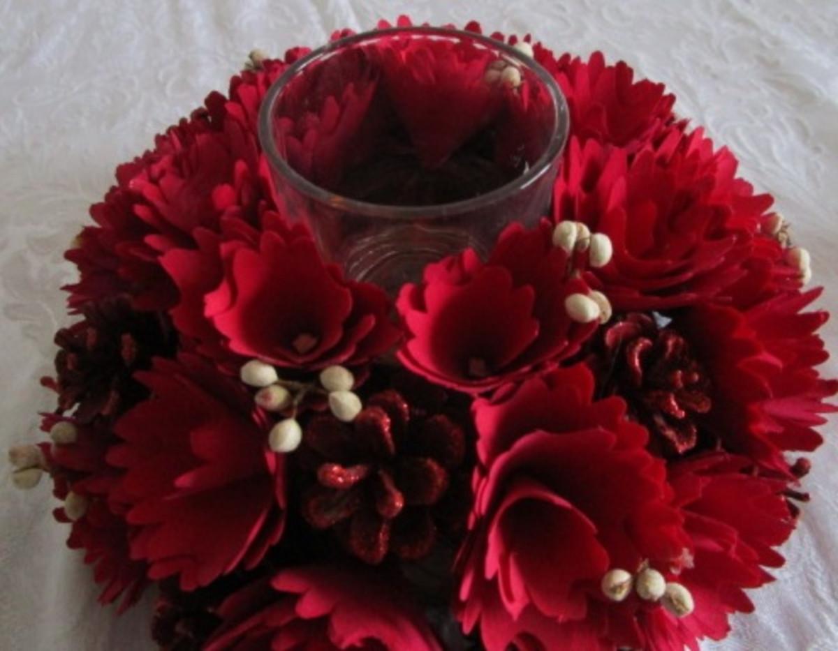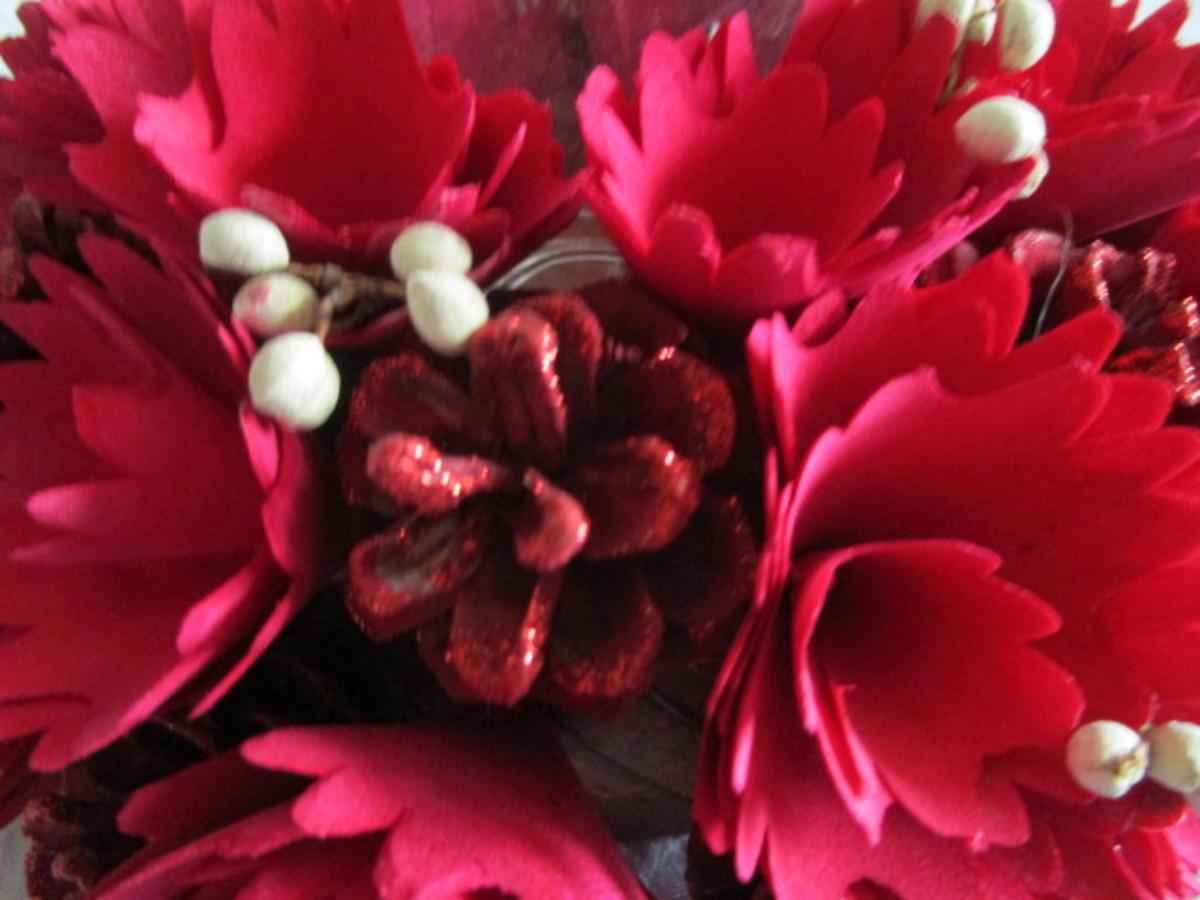 Wood Flower and pine cones arrangement with battery-operated candle