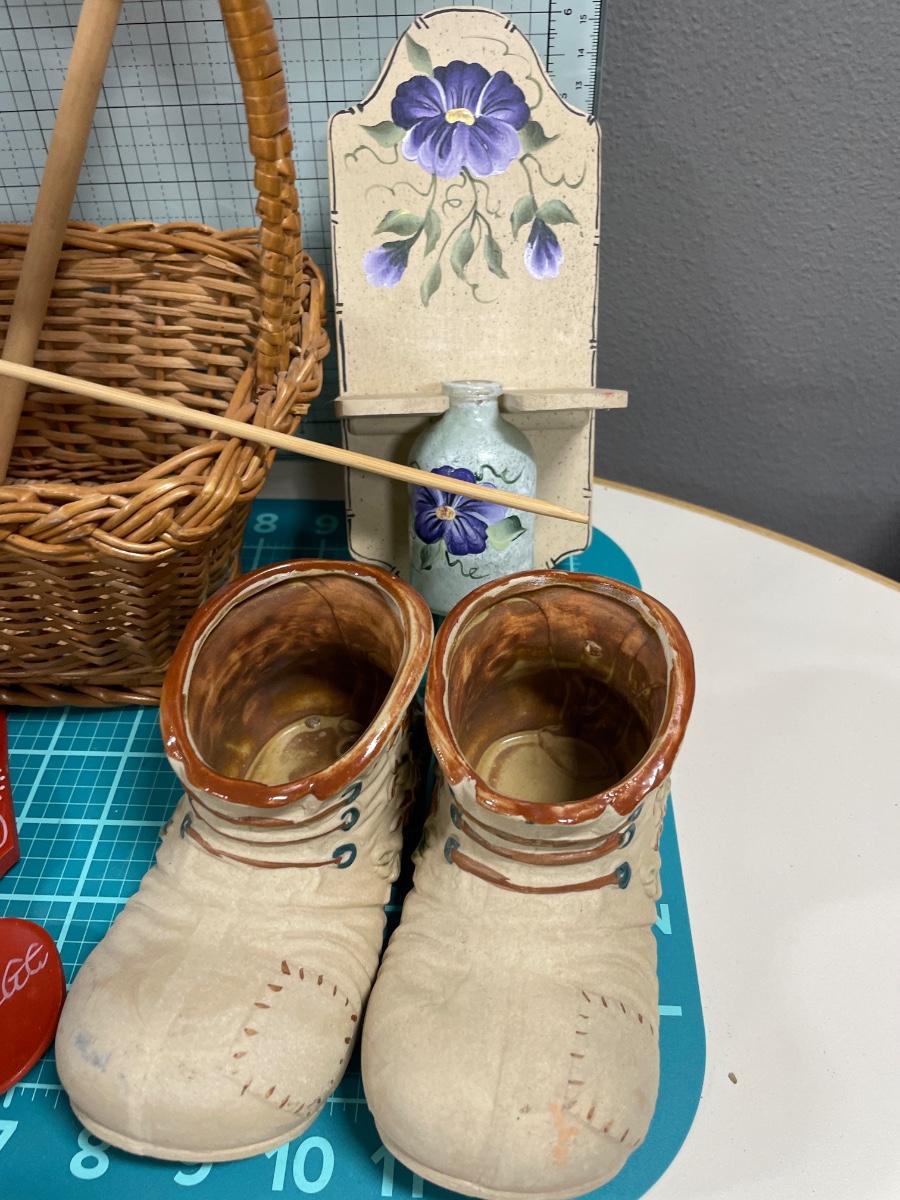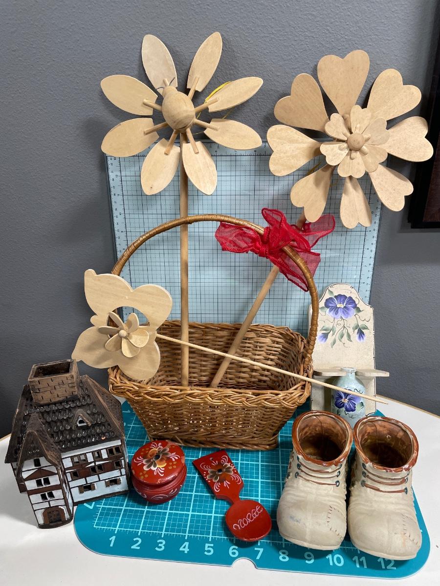 Wood flowers, shoes, cottage and more