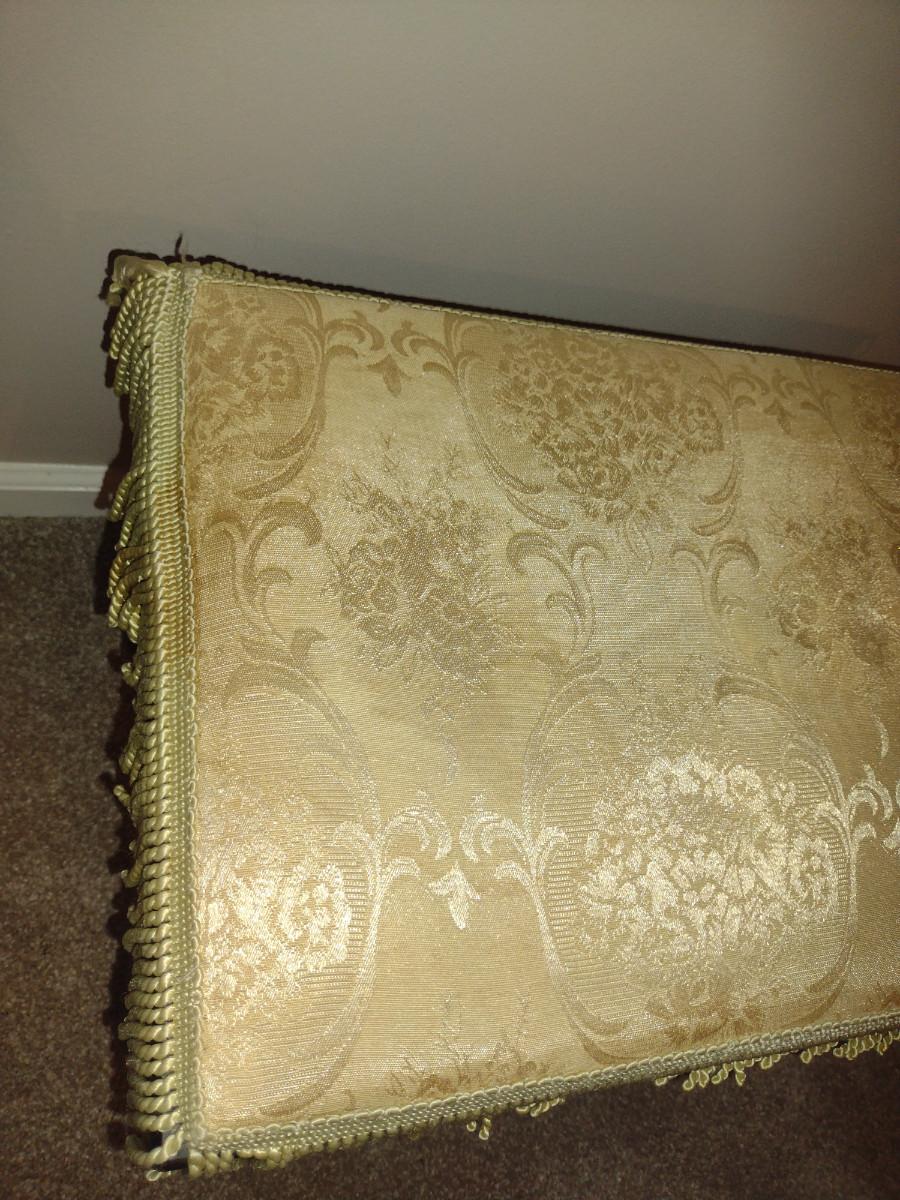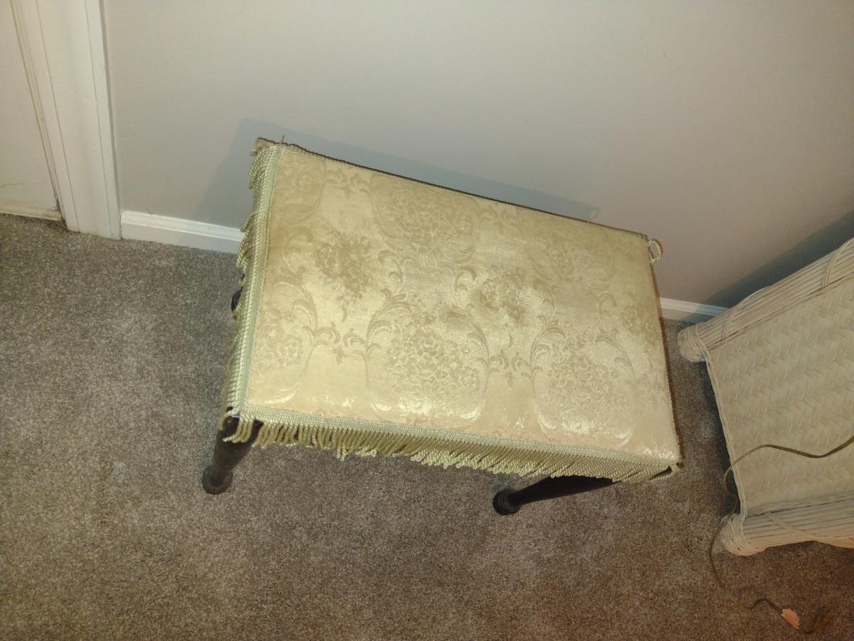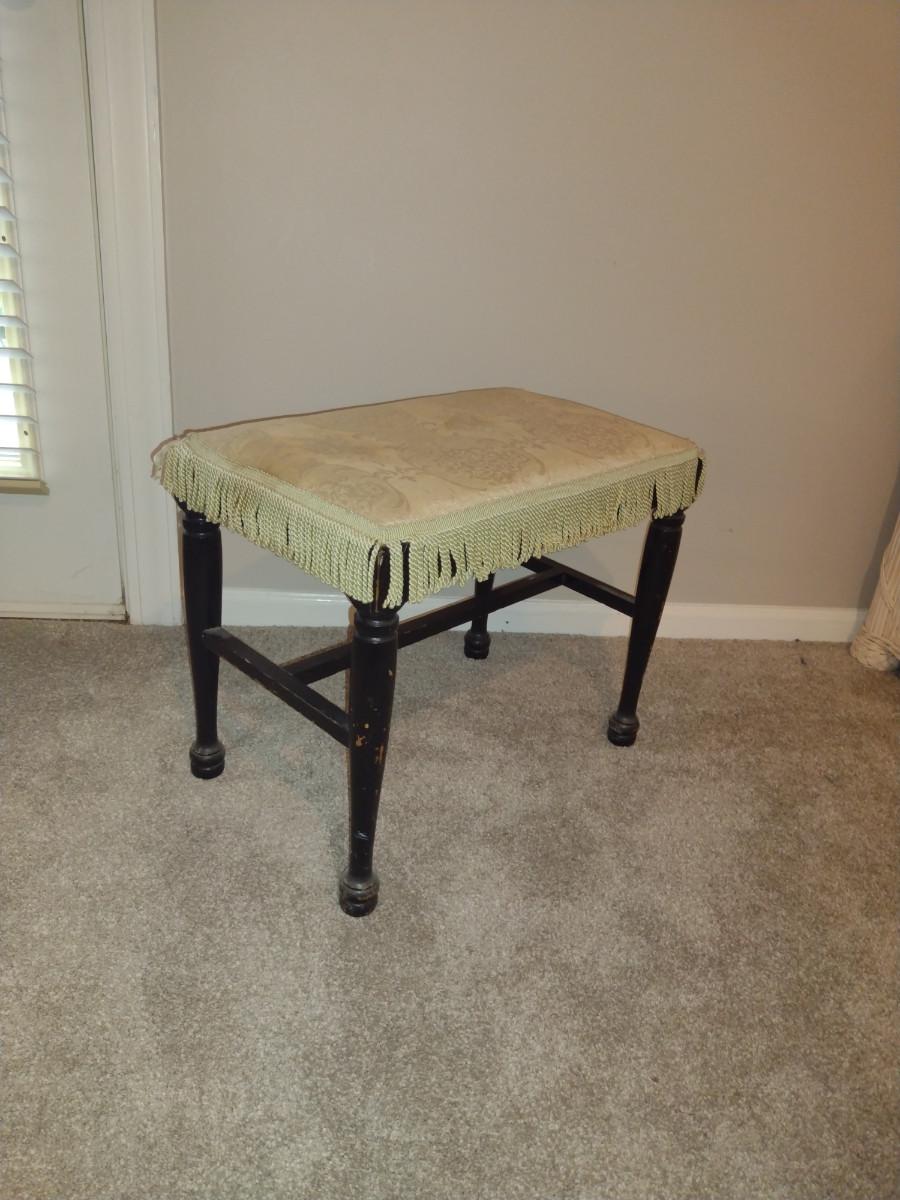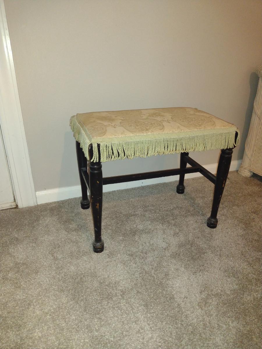 Wood Frame Bench with Upholstered Top- Approx 20 3/4" x 12" x 17 1/2" Tall. Please see all pictures- upholstery has stain.
