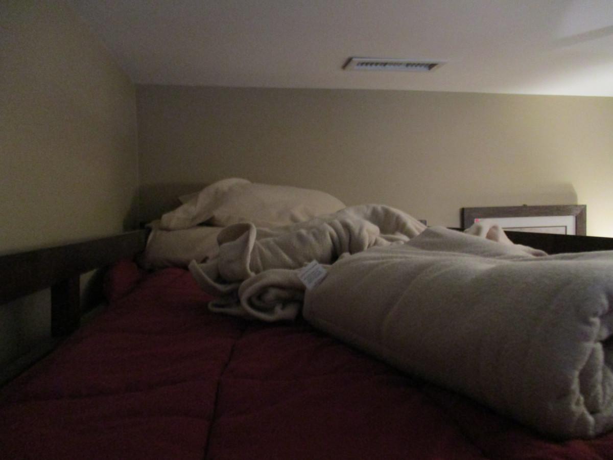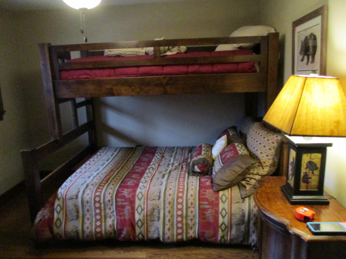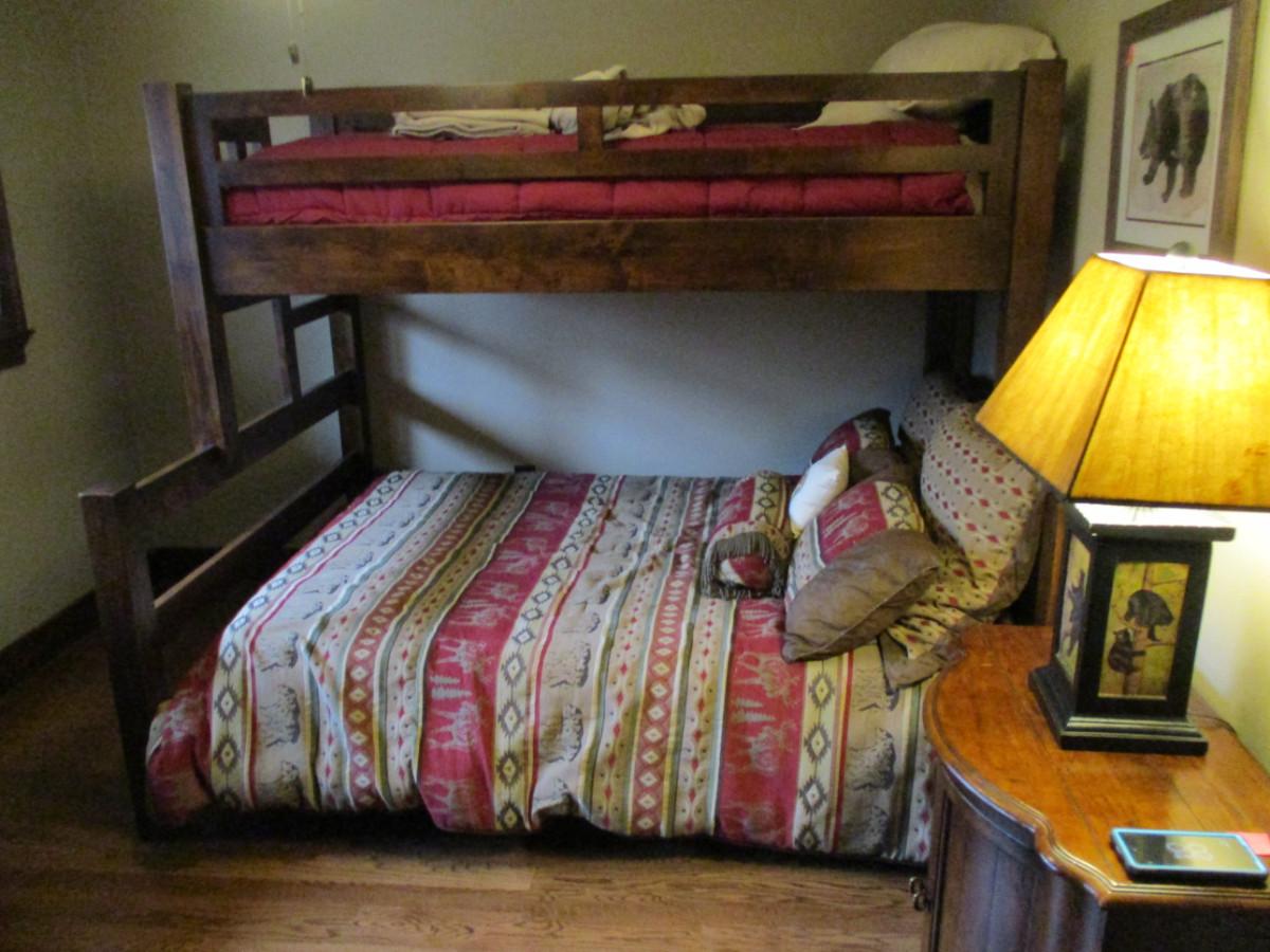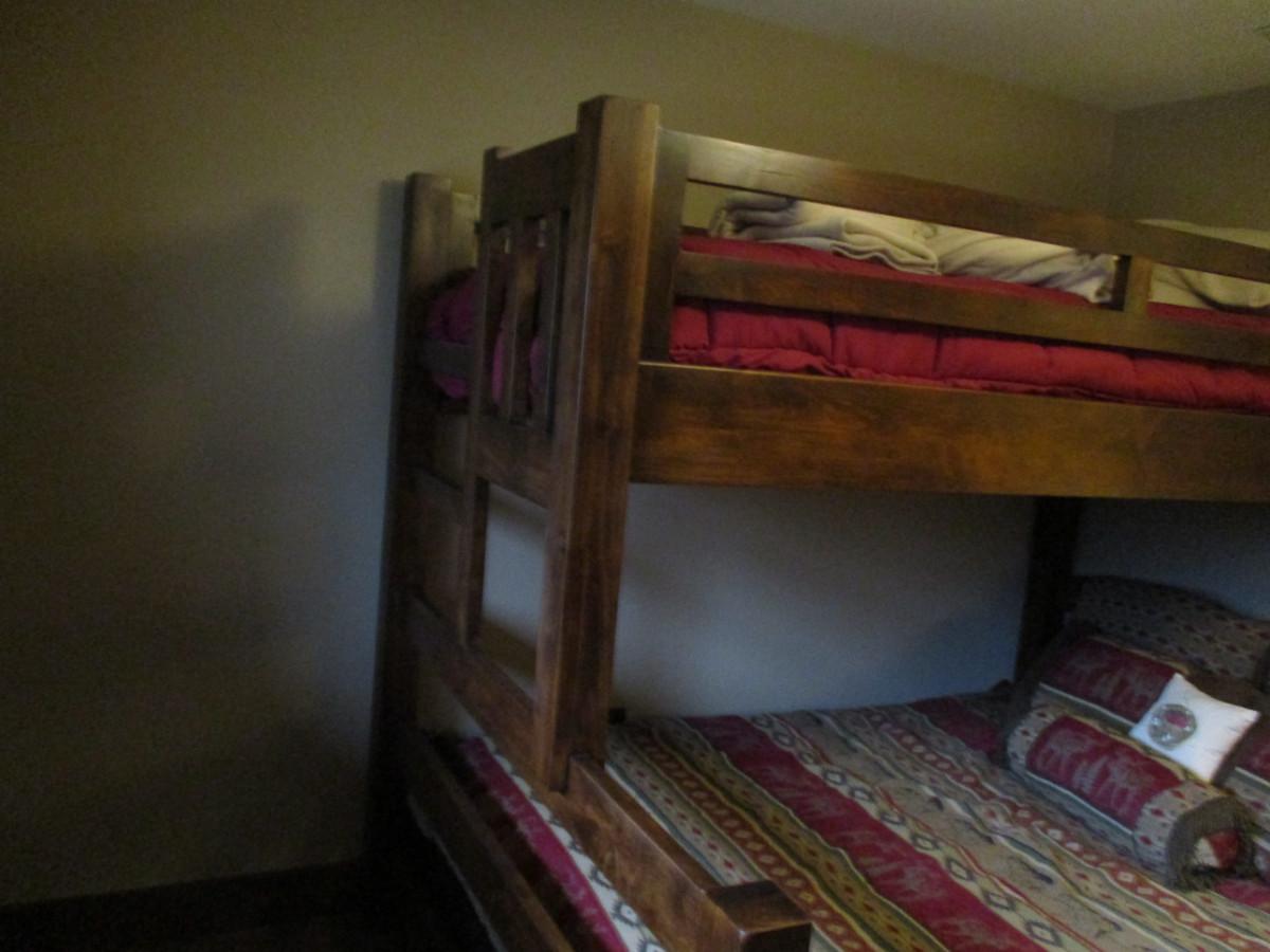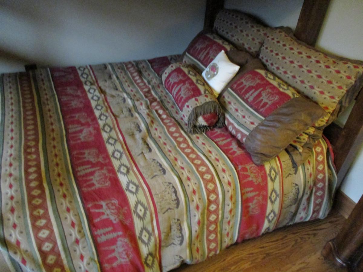 Wood Frame Bunk Bed. Includes linens that are shown.