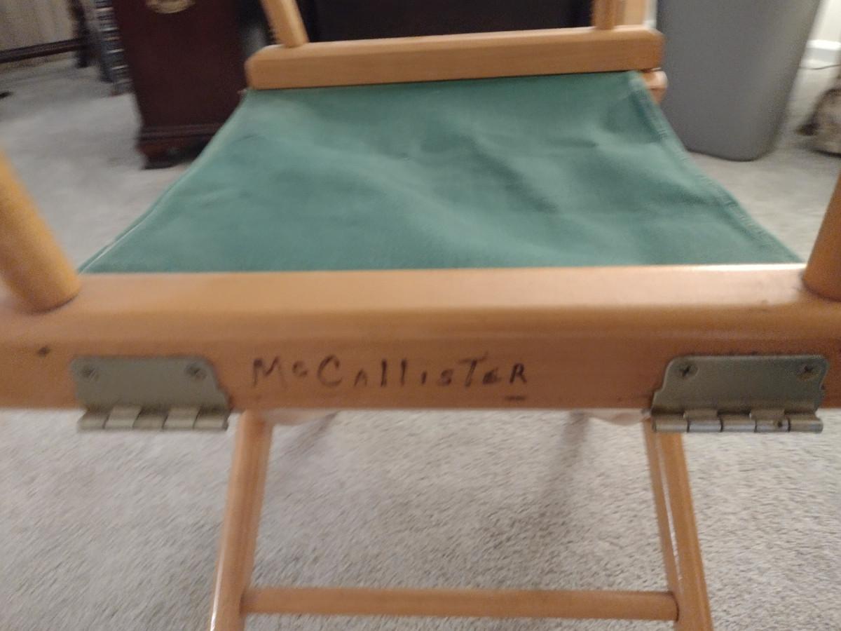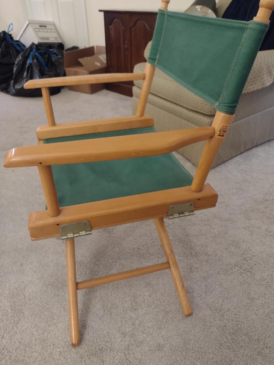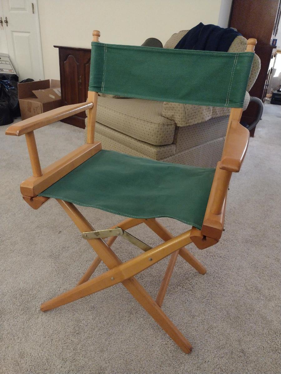 Wood Frame Folding Director's Chair with Canvas Seat. Item has name written on side- please see all pictures for condition.