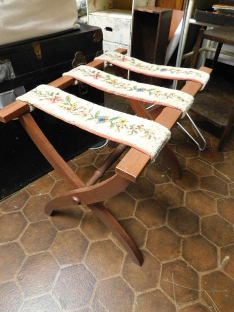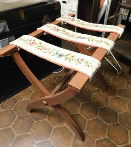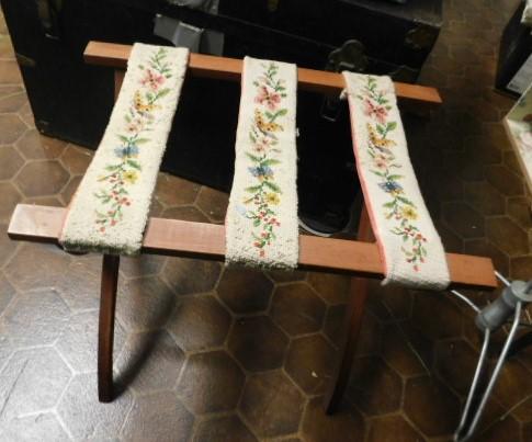 Wood Frame Luggage Rack with Needlework Fabric Straps