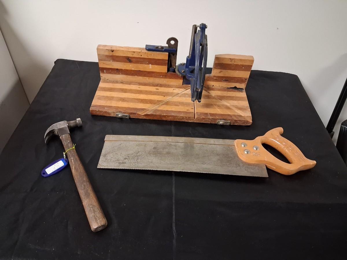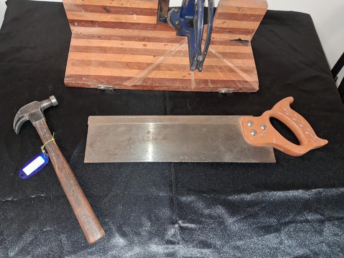 WOOD FRAME MITER BOX AND SAW