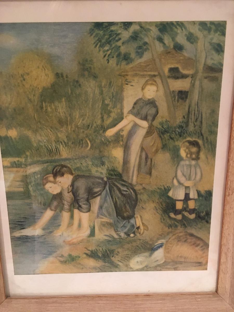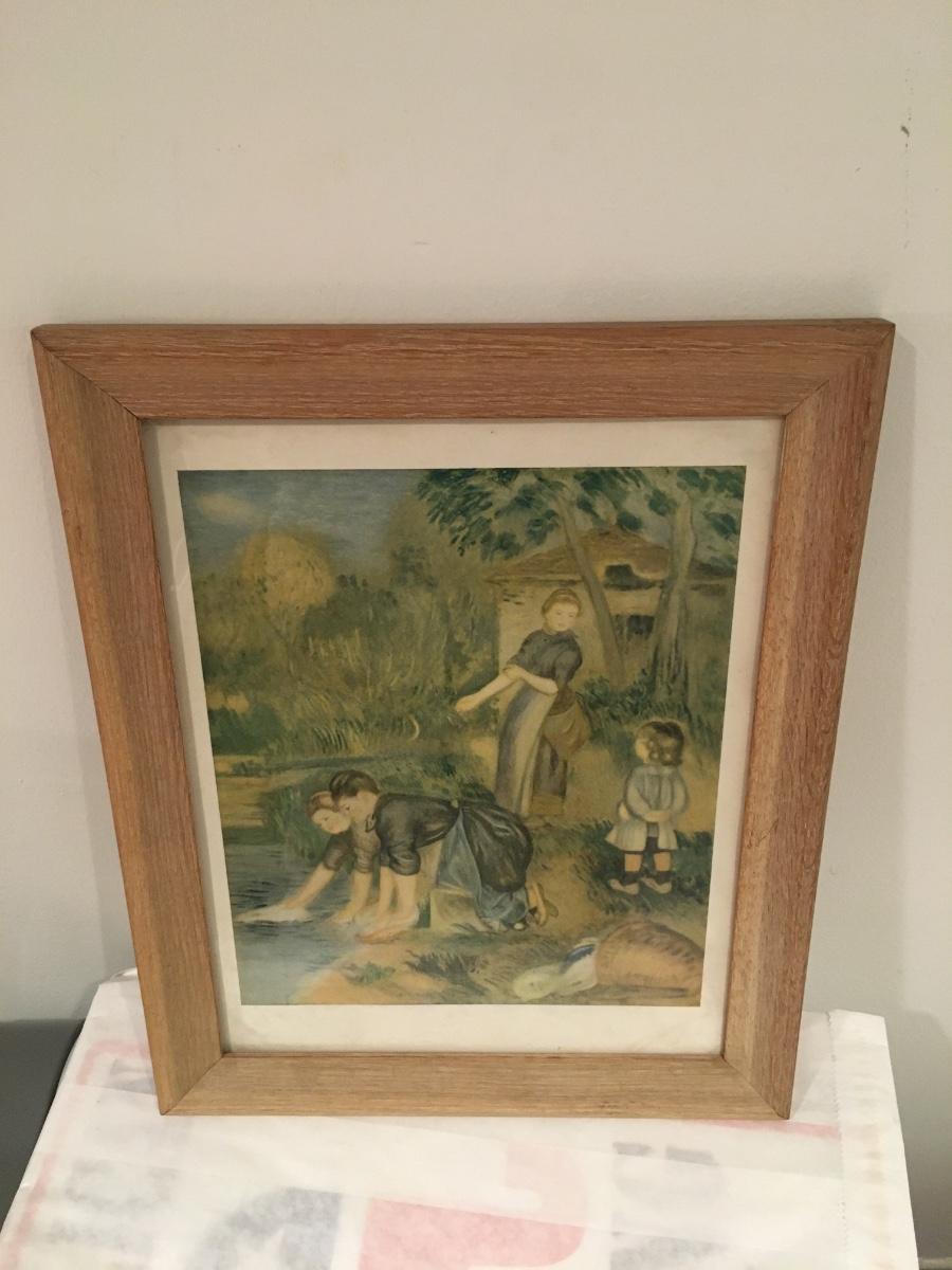 Sweet little print in a light wood frame.
