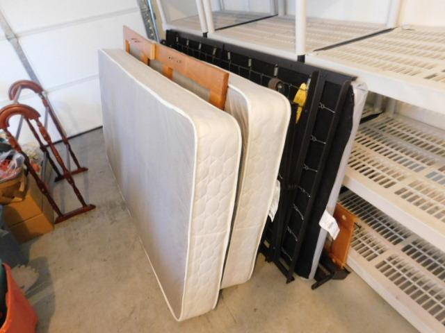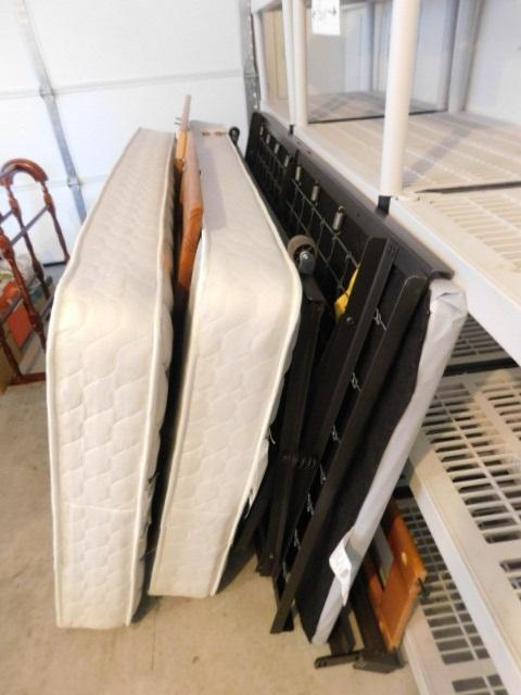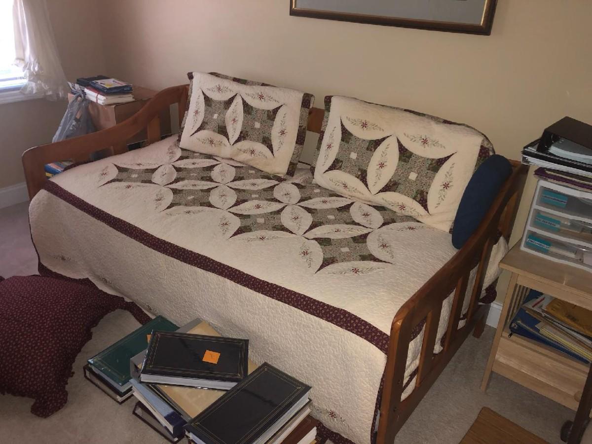Wood Frame Trundle Bed with Bedding Included bed has been disassembled for easy hauling. no stairs