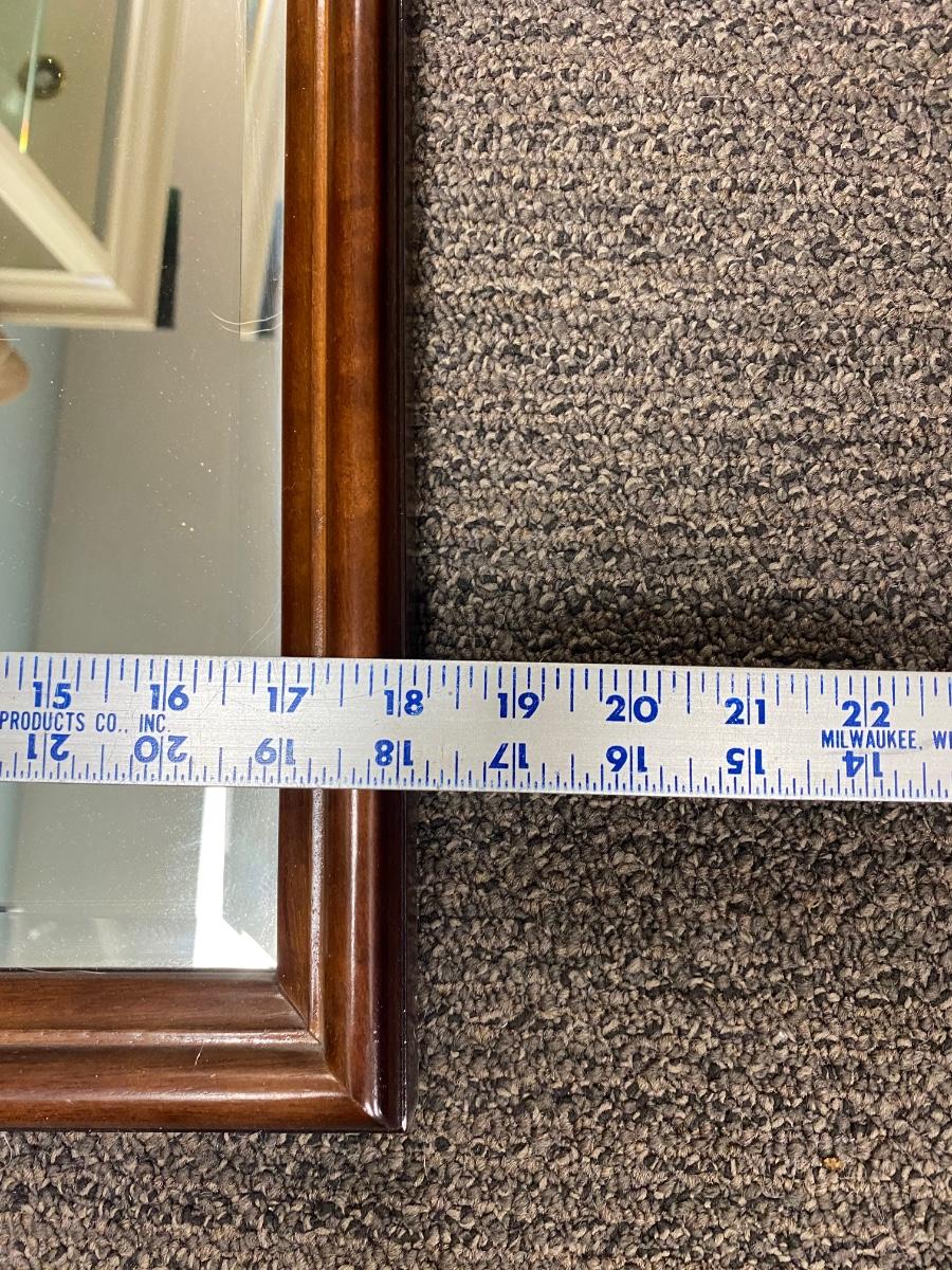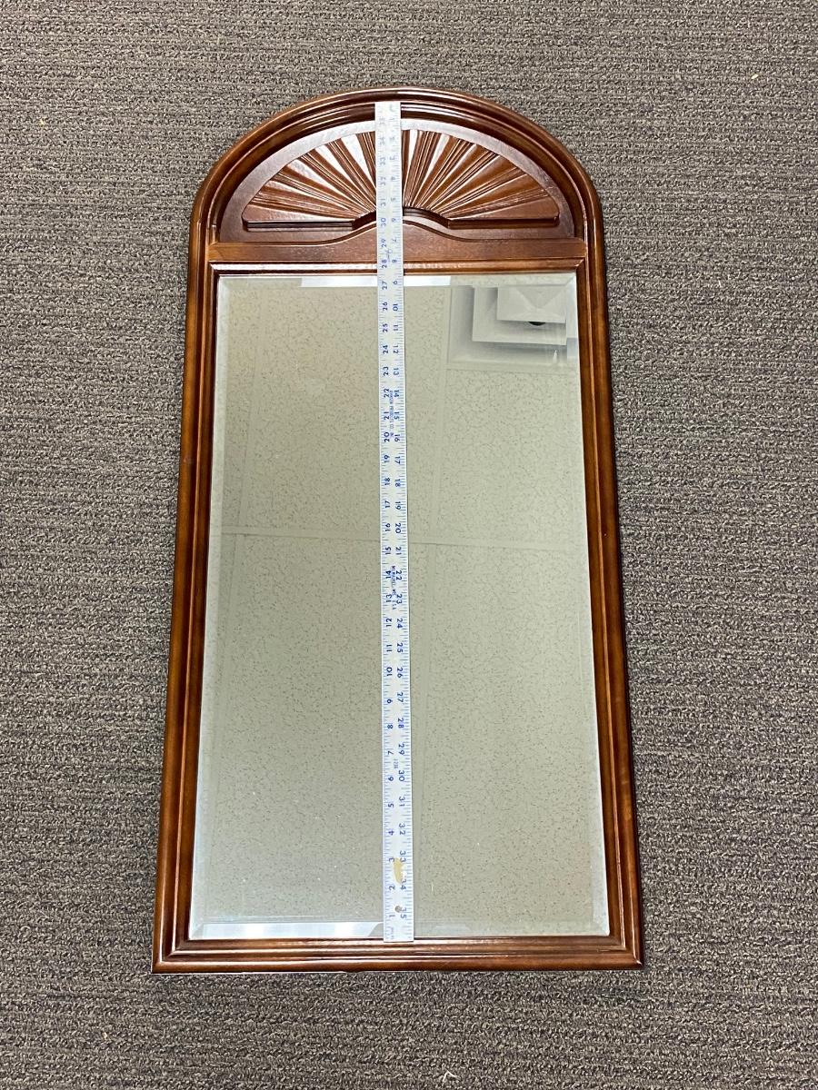 Wood frame wall mirror. Rectangular mirror, about 36"x18" size. Good condition.