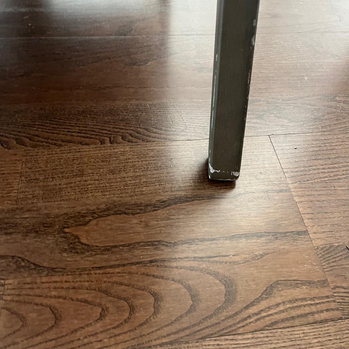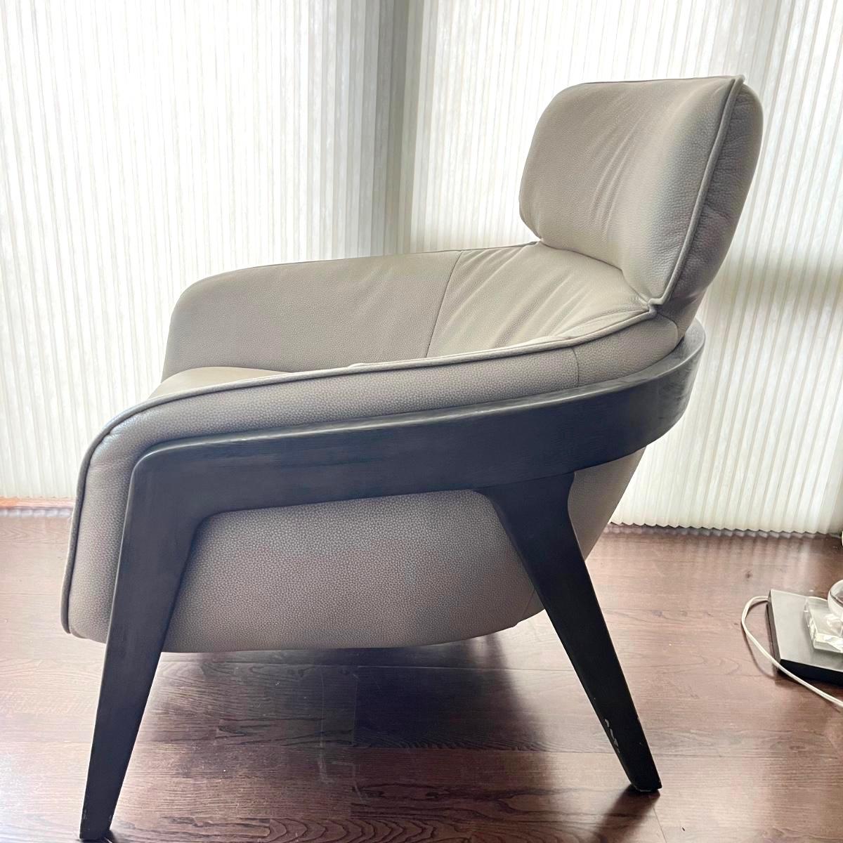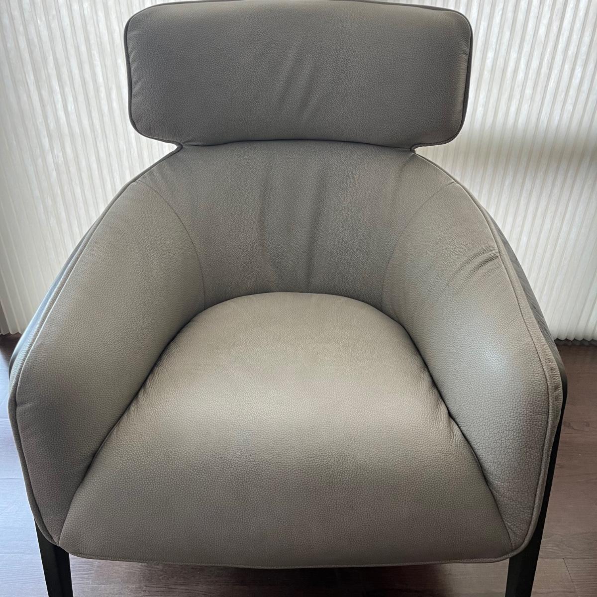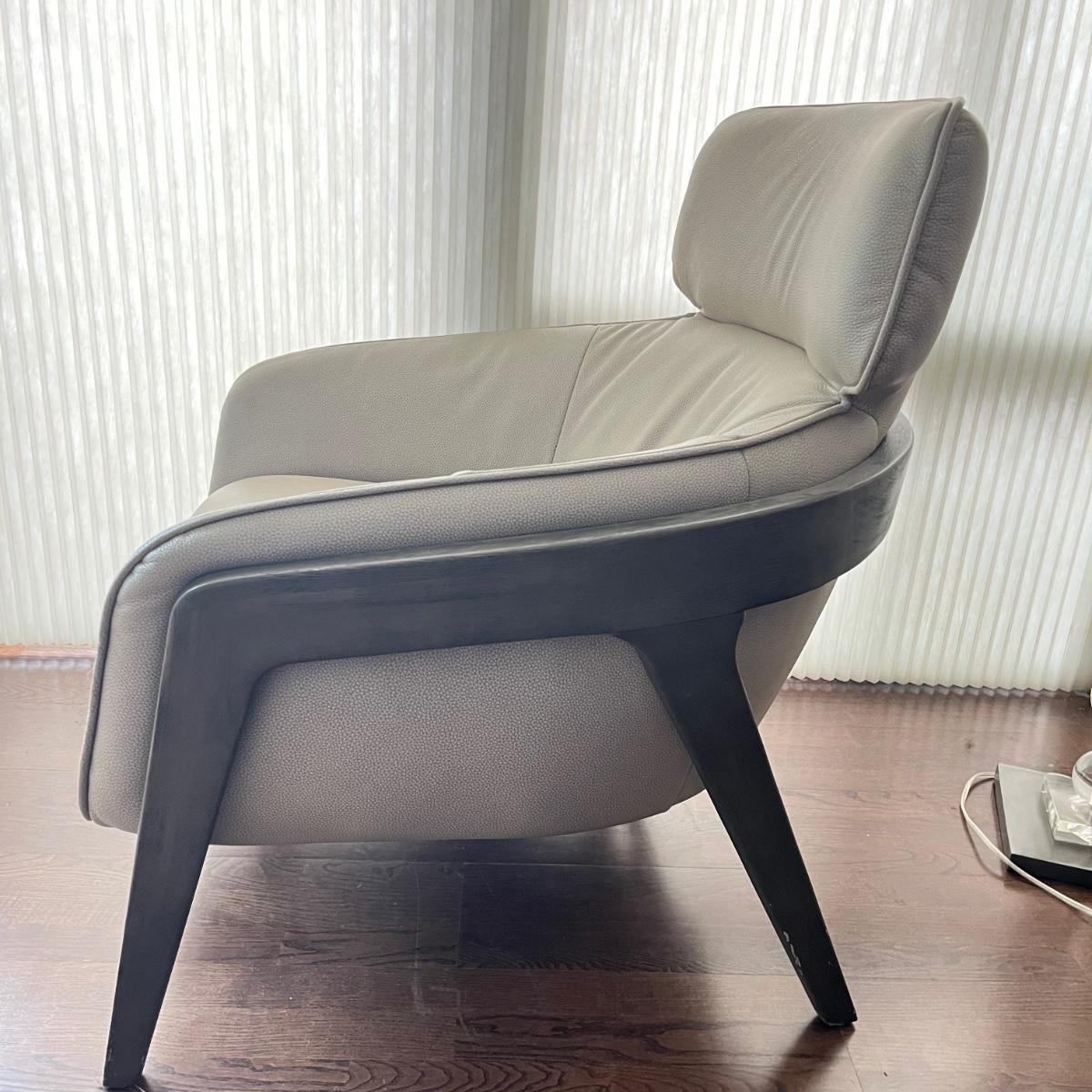 Lot includes a wooden framed accent chair with what appears to be leather covering, but it is not labeled leather. Chair is in excellent condition with a few scratches on legs, see pictures. Chair measures 32” x 36” x 36” with a 17” seat height.