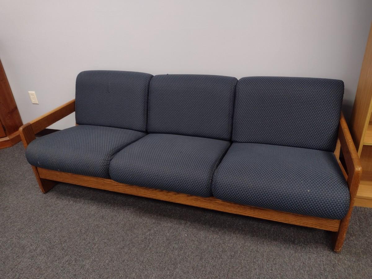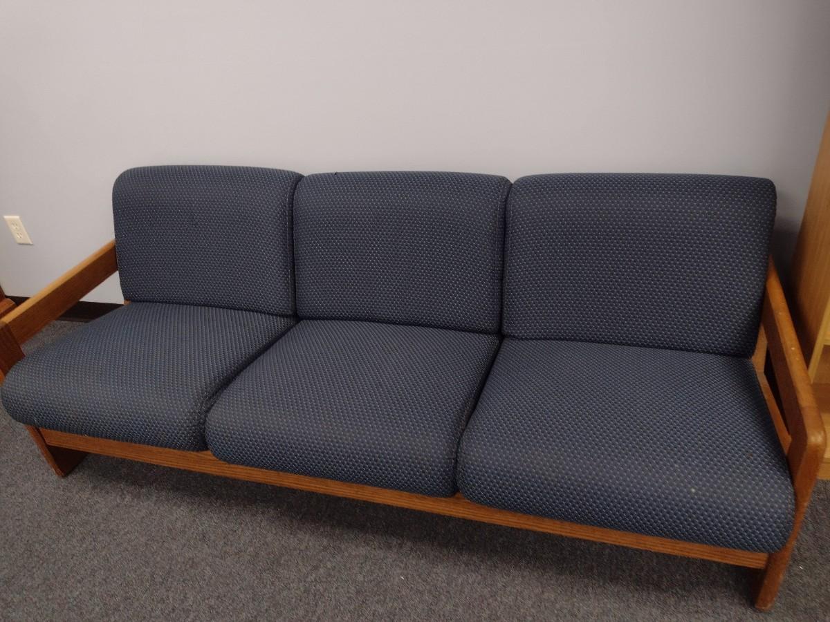 Wood Framed Commercial Grade Three Cushion Couch Choice A. Will need to be cleaned.