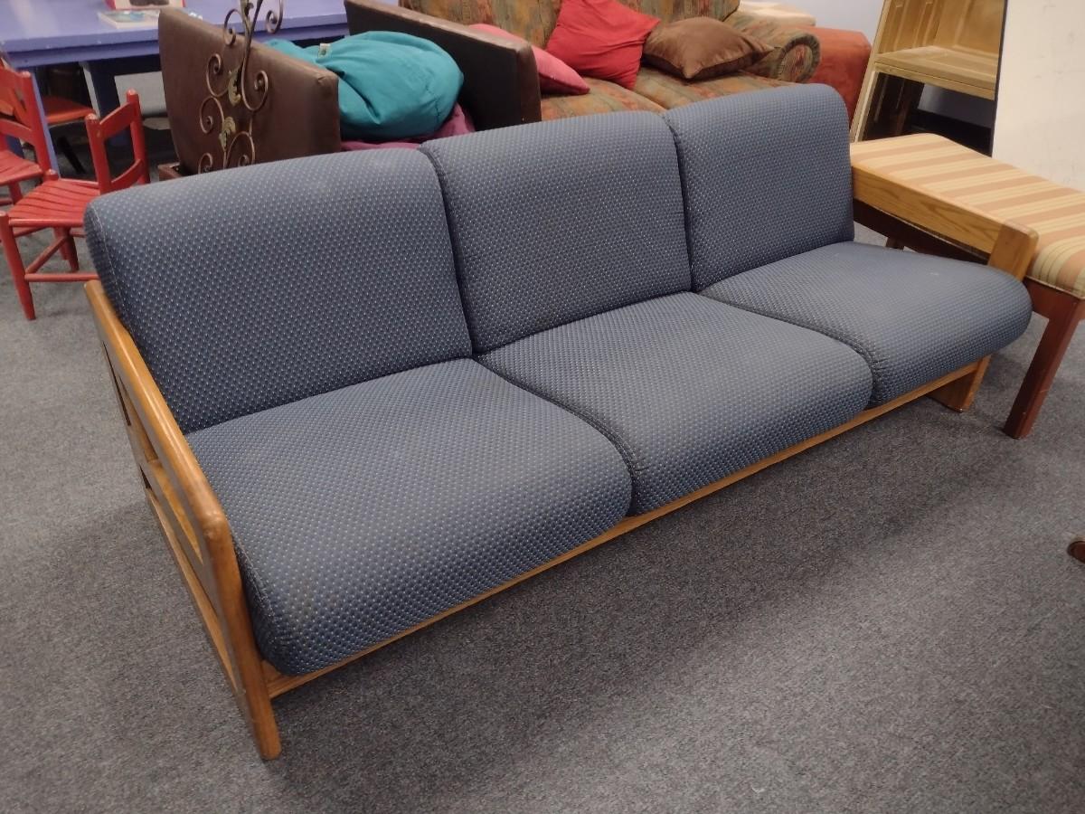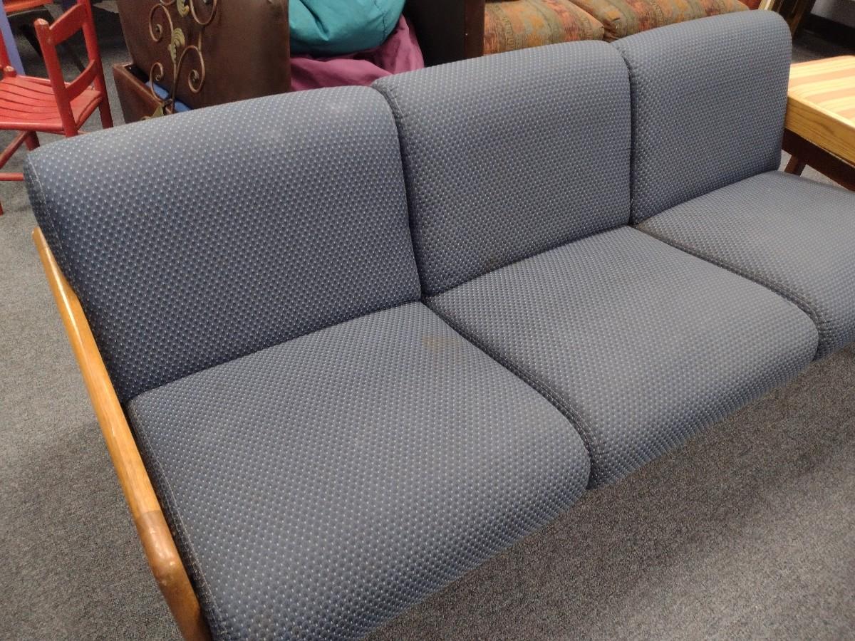 Wood Framed Commercial Grade Three Cushion Couch Choice B. Will need to be cleaned.