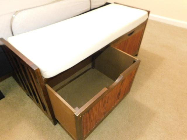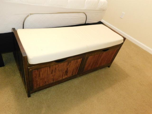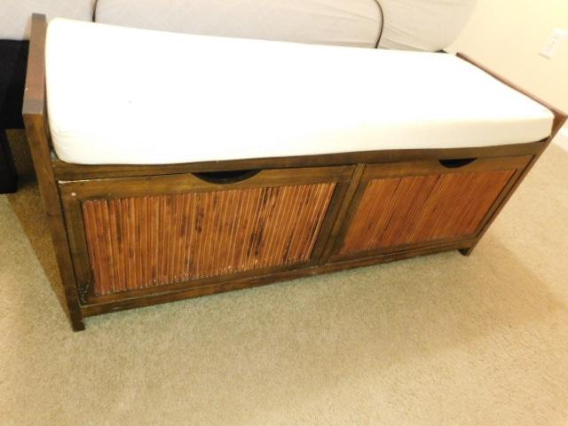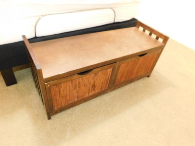 Wood Framed Foot Board Sitting Bench with Double Basket Storage Bins