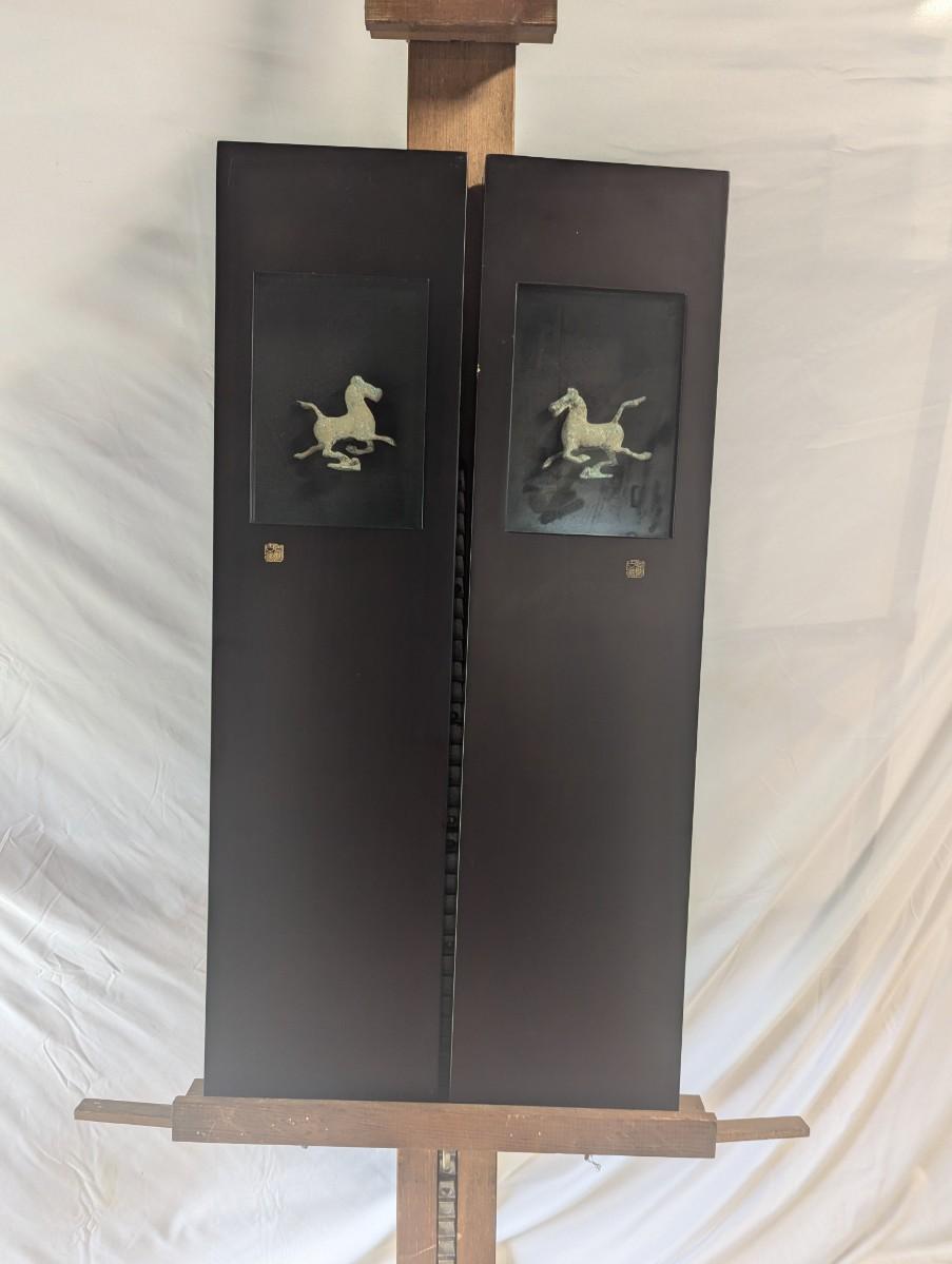 Wood Framed Shadow Boxes Asian Horse Sculptures