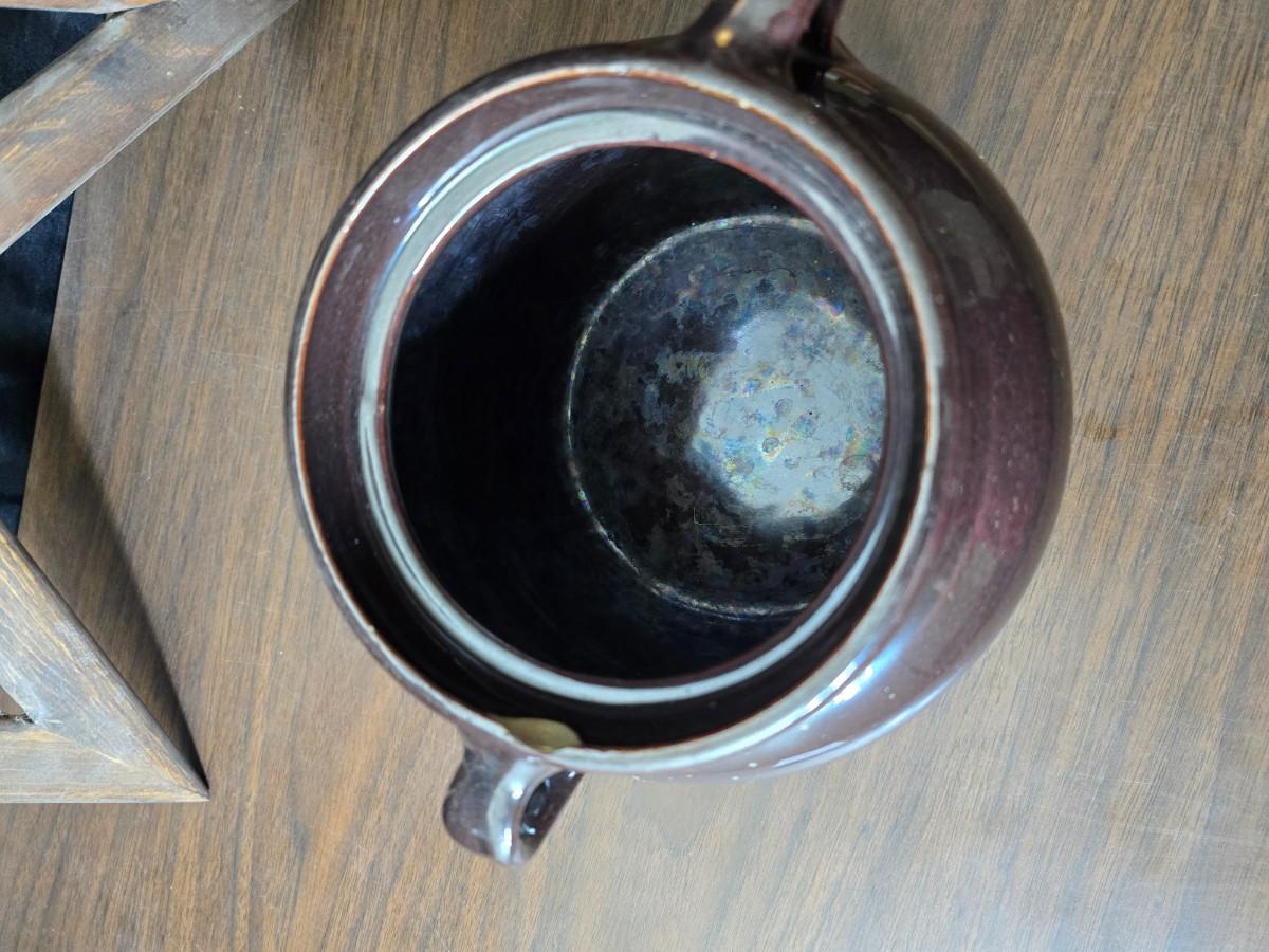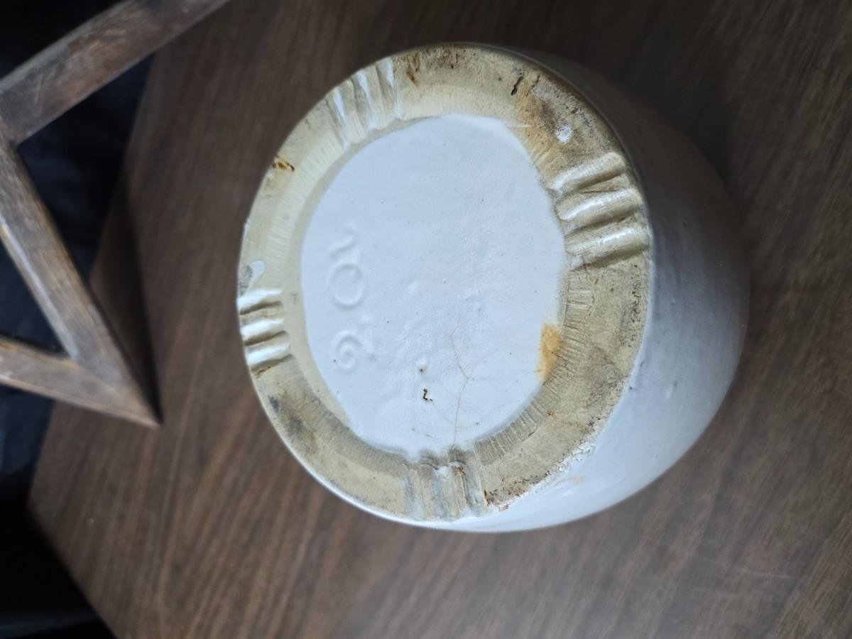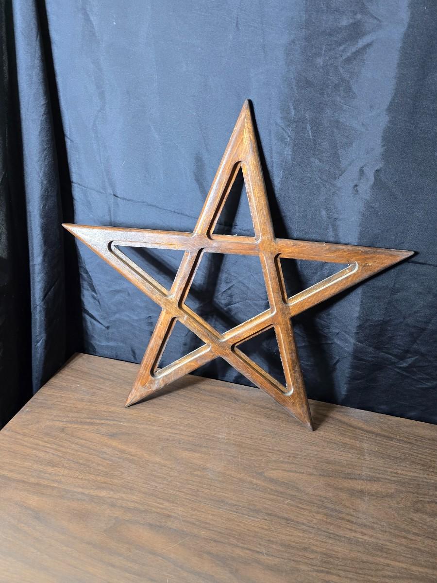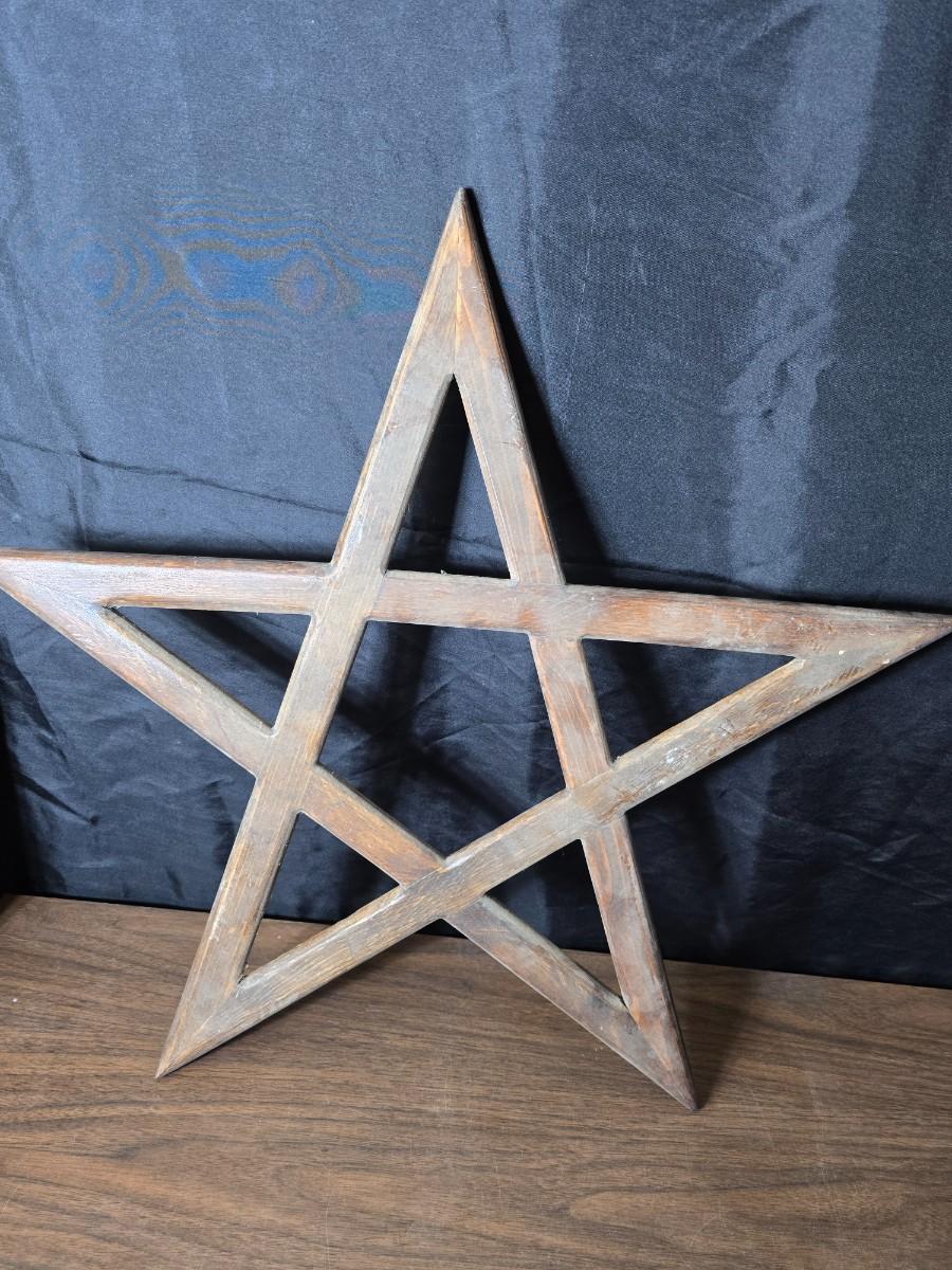 Wood framed star and a small 201 marked crock bean pot with double handles
