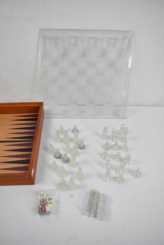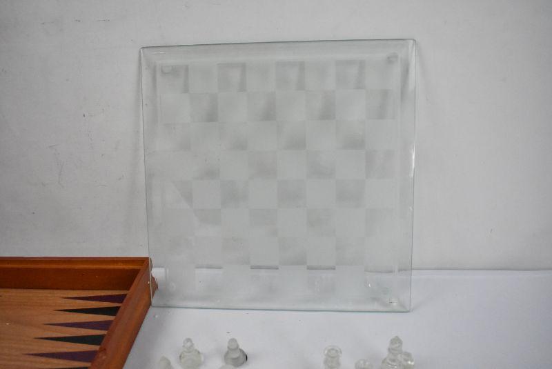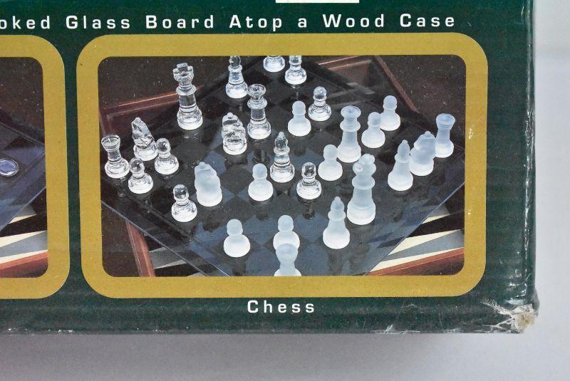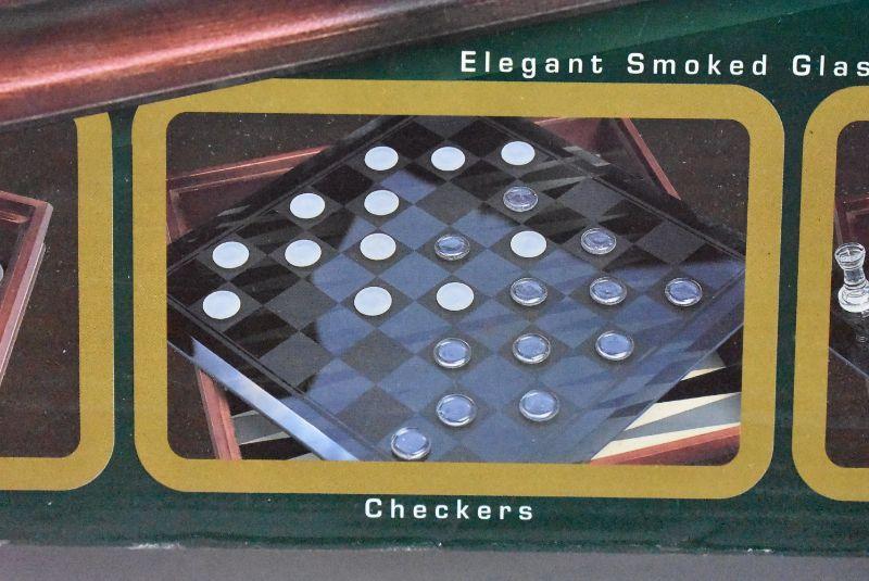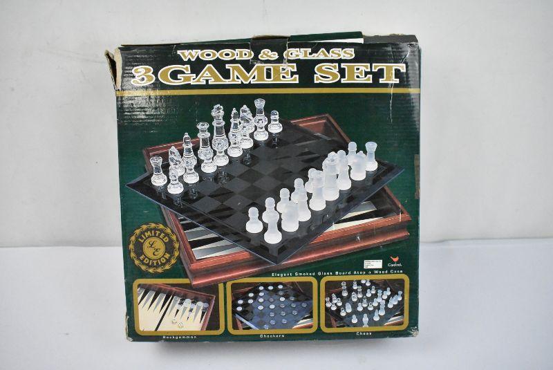 Wood & Glass 3 Game Set: Backgammon, Checkers, & Chess - Complete