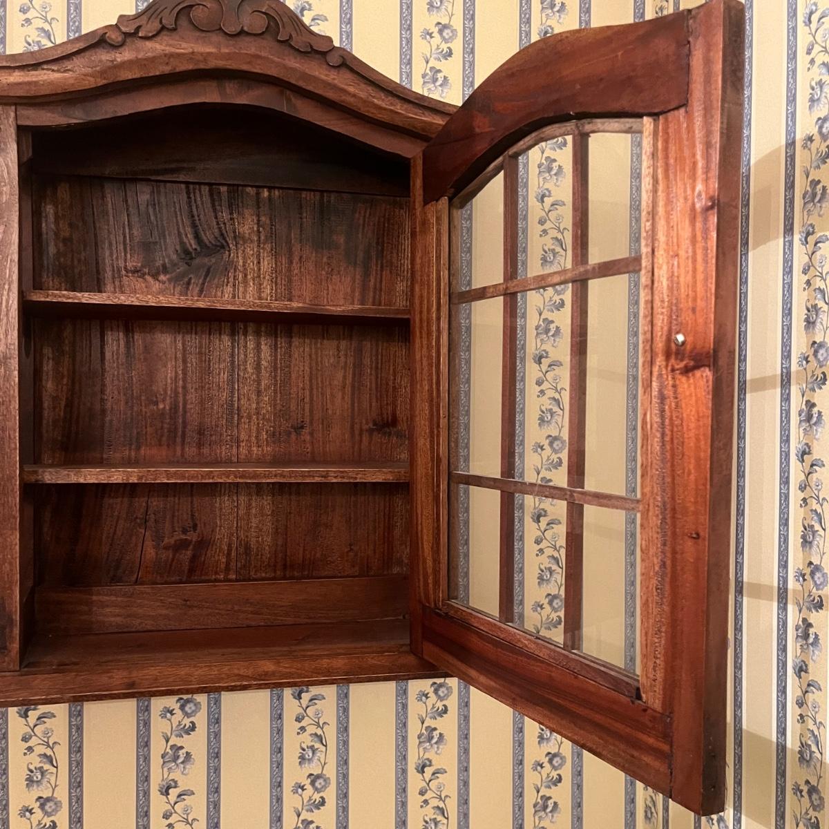 Lot includes a wooden cabinet with glass front and sides. Cabinet measures 18” x 6” x 24”H. Winning bidder will need to remove from wall.