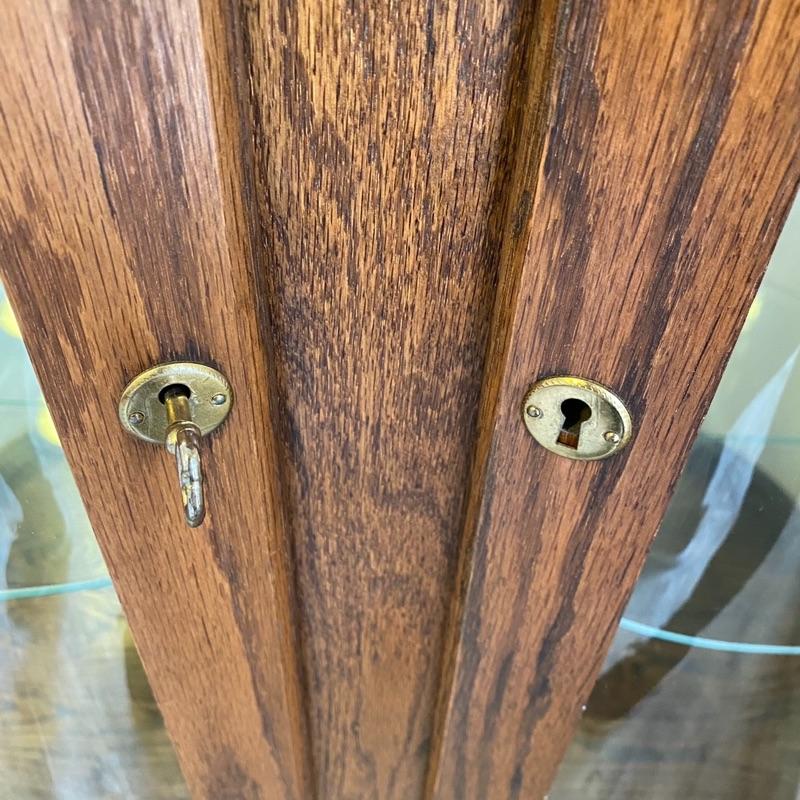 Lighted / 3 Glass Shelves - non adjustable / Has Key / 63” H x 44” L x 20” D