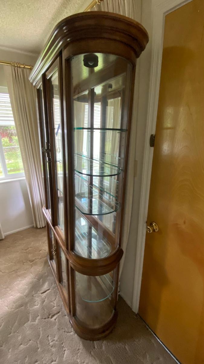 Wood & Glass Oval Curio Cabinet w/5 shelves 77”x49”