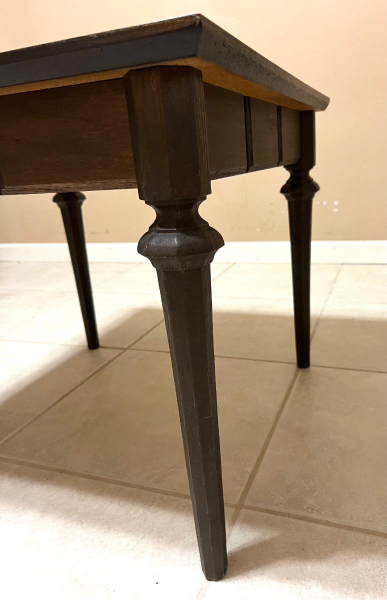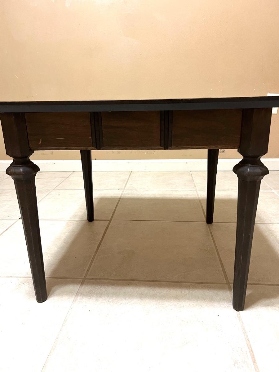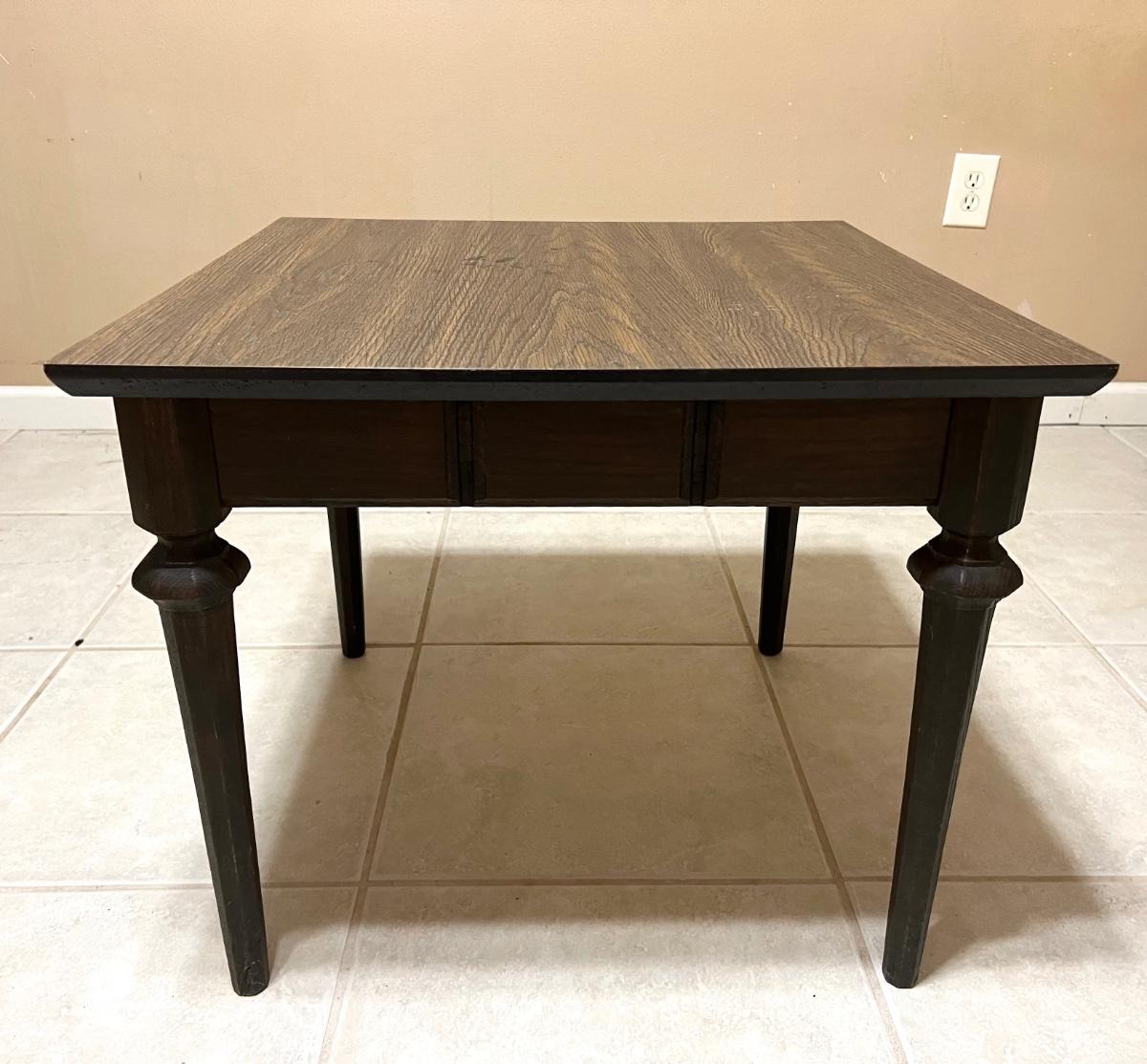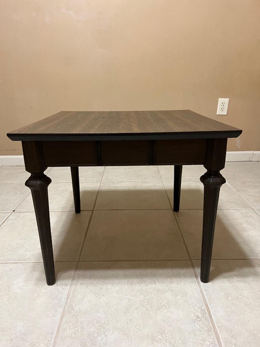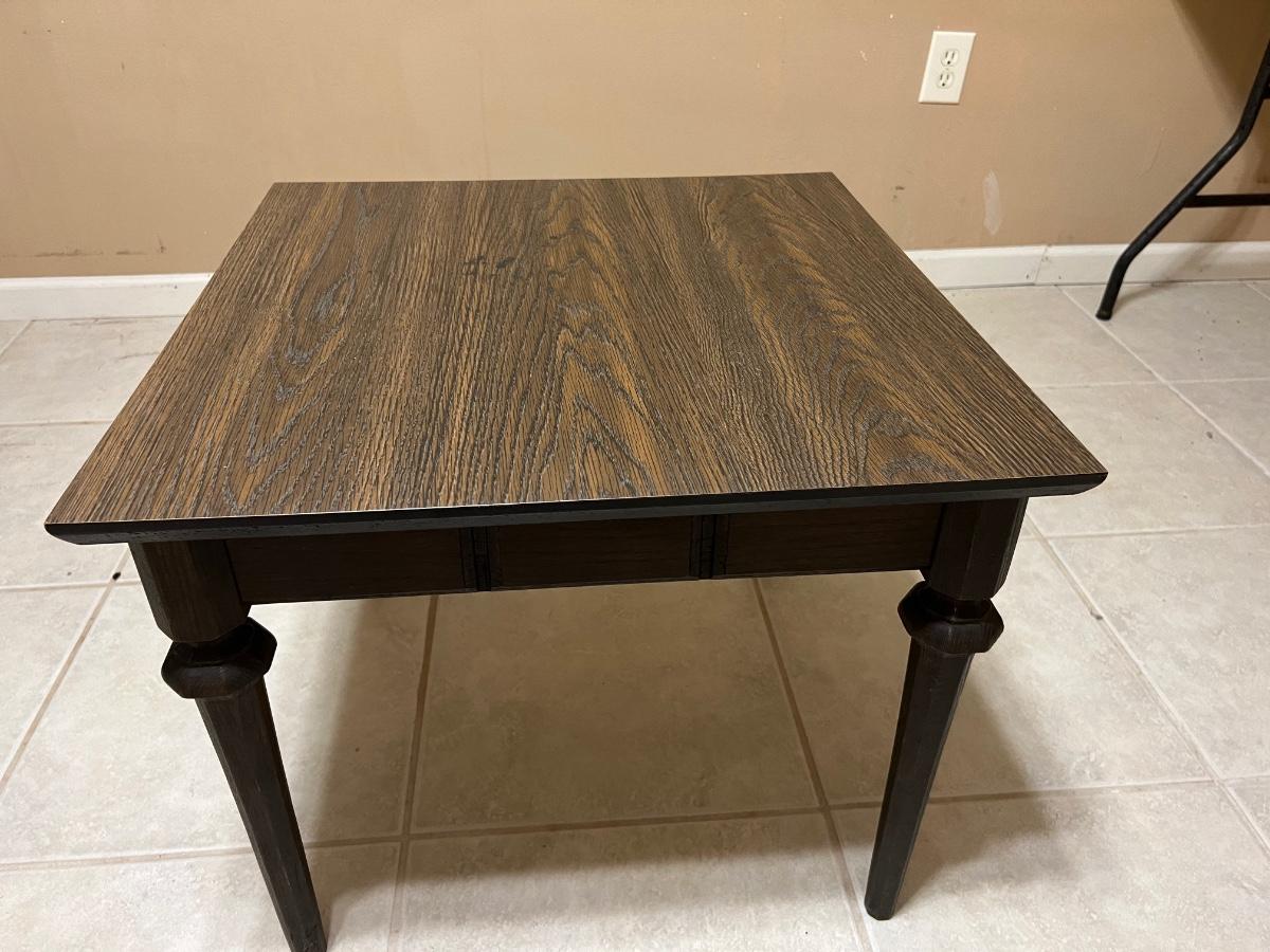 Look at the little details on this wooden, wood grain top side table! Measures 20 inches tall,24 inches wide and 24 inches deep.
