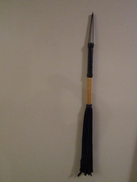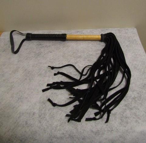 Wood Handle Black Flogger with Knotted Ends- Approx 38"