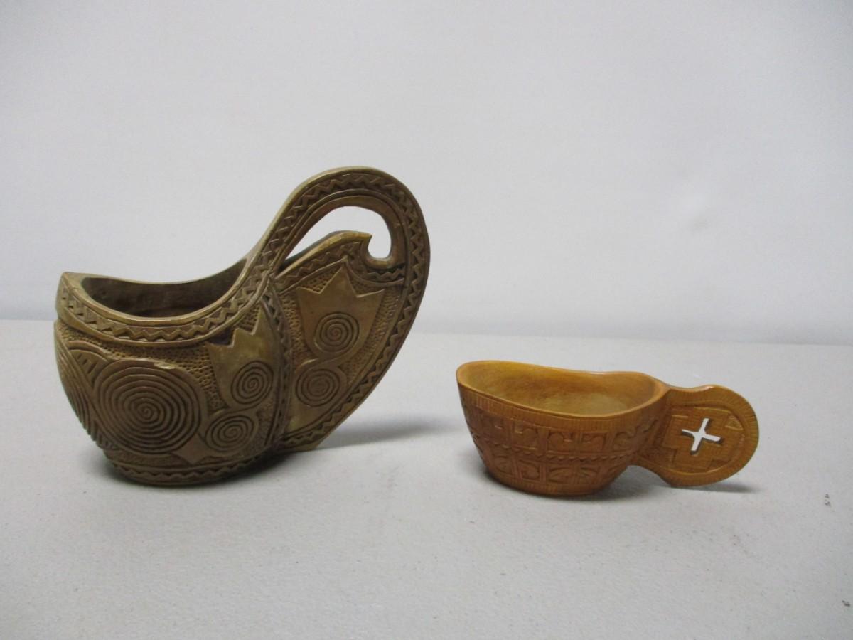 Antique Scandinavian Wood Carved Wedding Cups