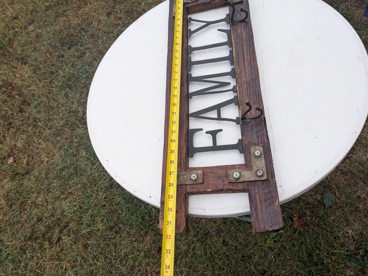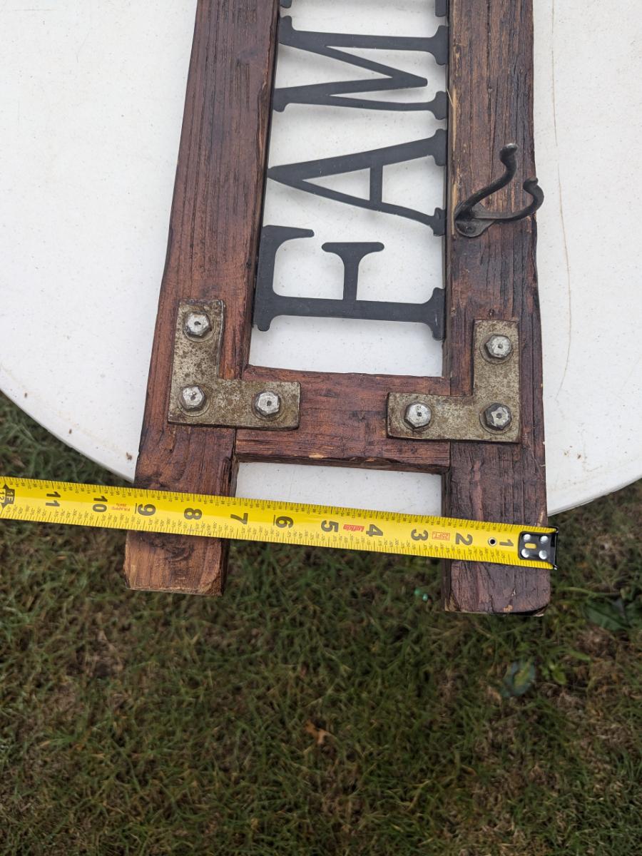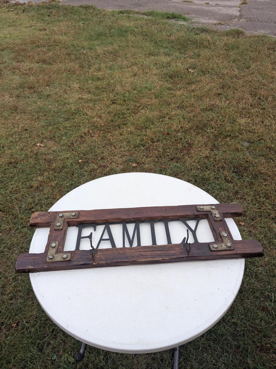 Wood home Décor sign "Family" with coat hooks