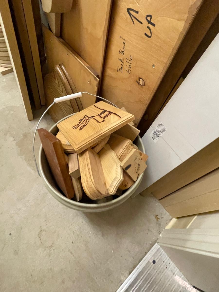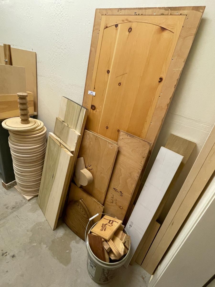 Lots of nice wood in this lot including all long pieces, bucket full, stack of round routed pieces - see all photos